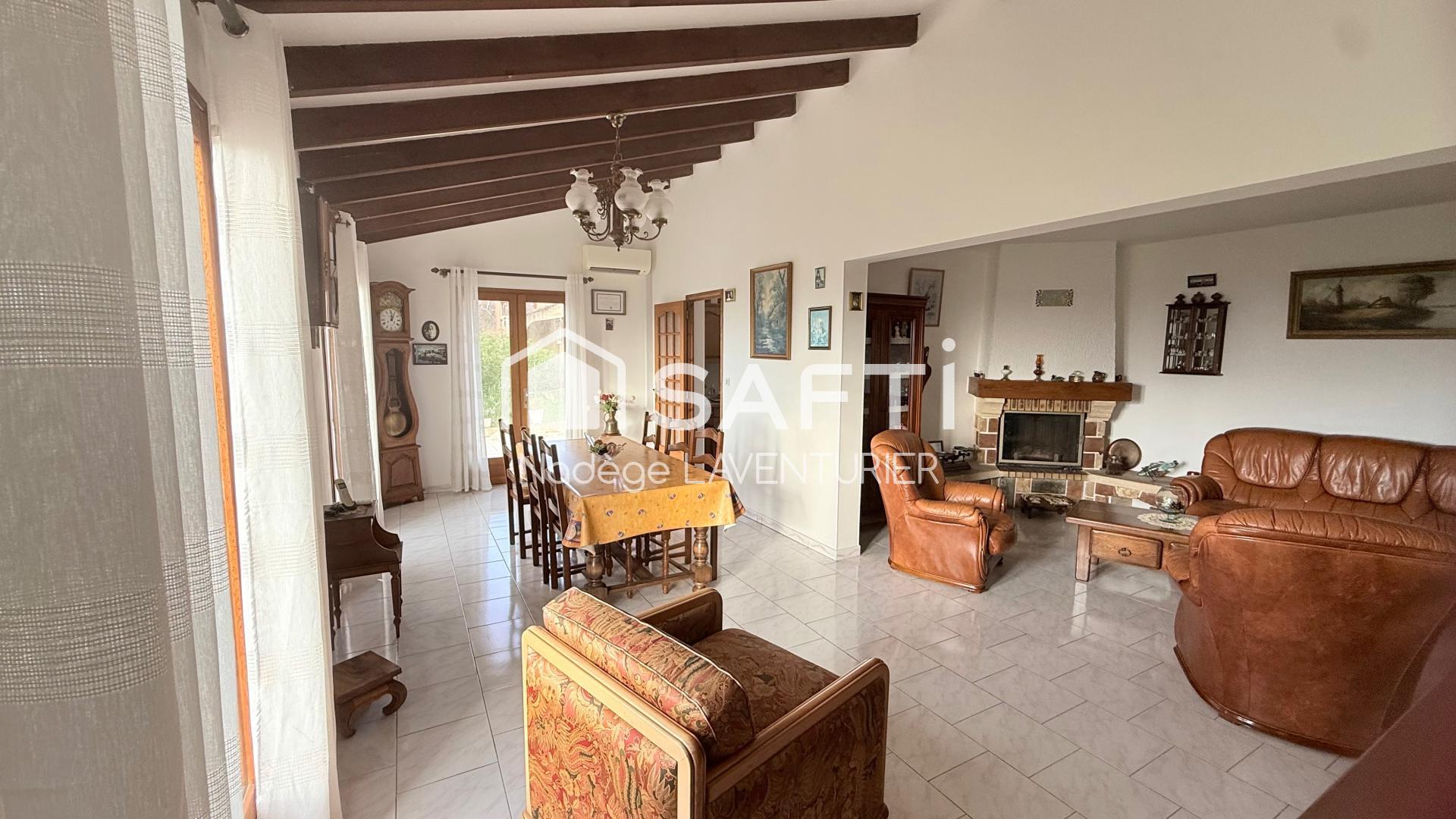 Résidence calme sans copropriété,130 m², 4 chambres, jardin clos facile d’entretien, terrasses, garage, clim réversible, tout-à-l’égout.
