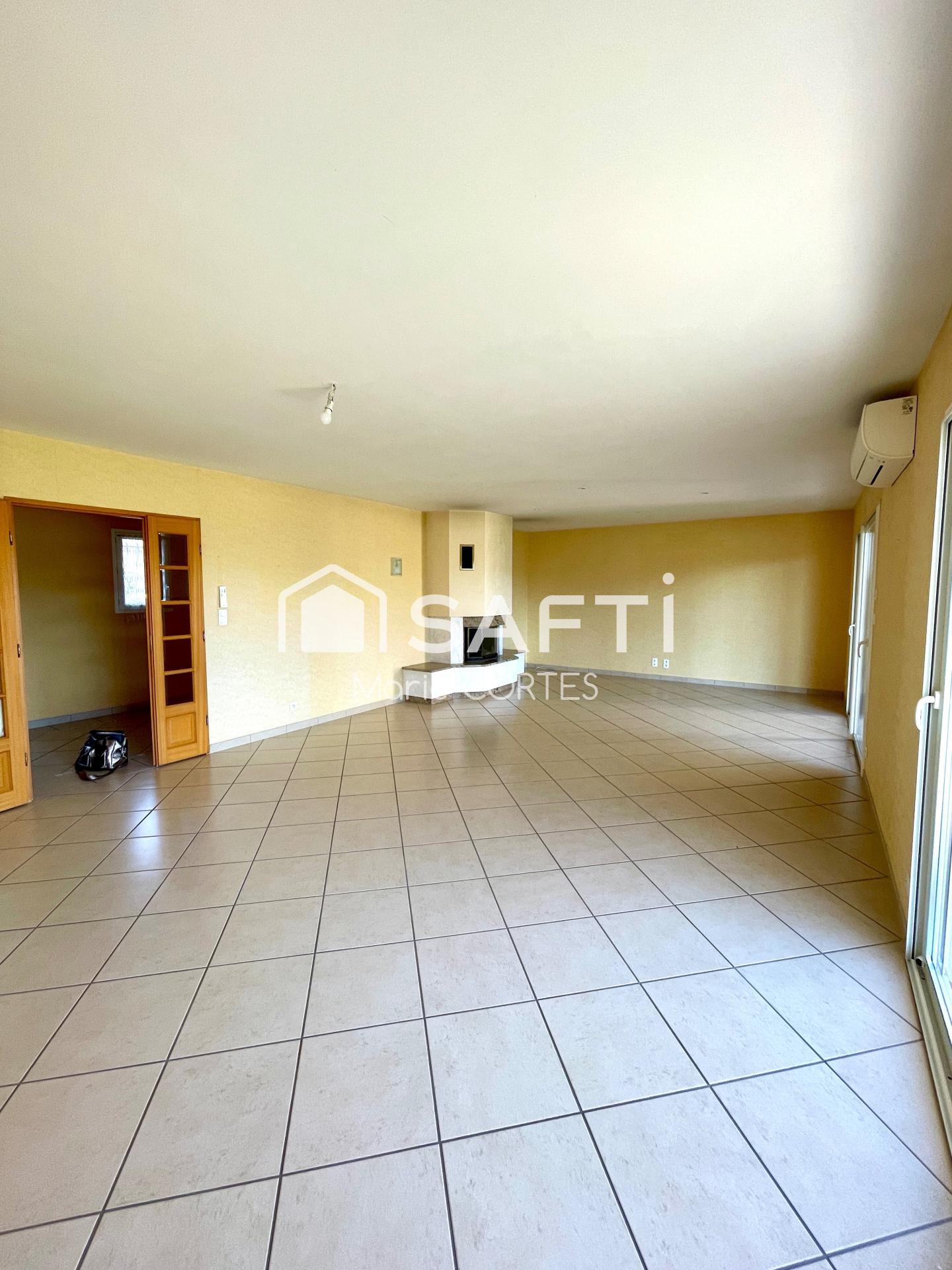 Lescure d’albigeois, proche des commodités, maison traditionnelle de 243 m² habitables lumineuse et fonctionnelle sur une parcelle de 3000 m2. Elle offre un vaste salon-séjour lumineux de 45 m² avec insert bois, une cuisine indépendante d’environ 20 m² avec cellier attenant ouvrant sur une grande terrasse couverte,