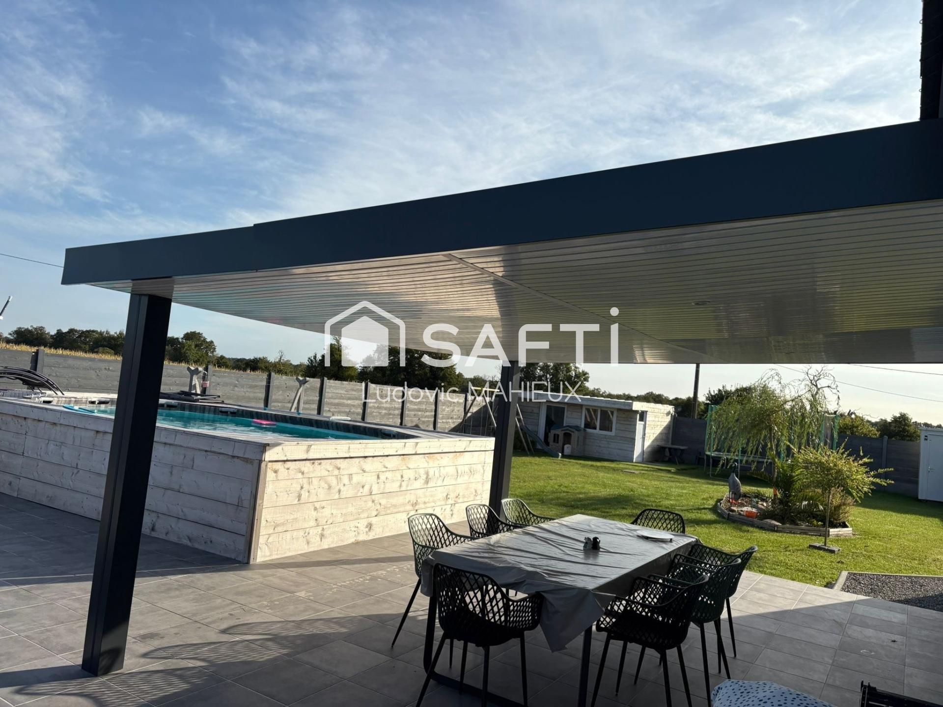 Une terrasse en partie couverte de 120 m2 environ avec sa piscine 6m X 3m.