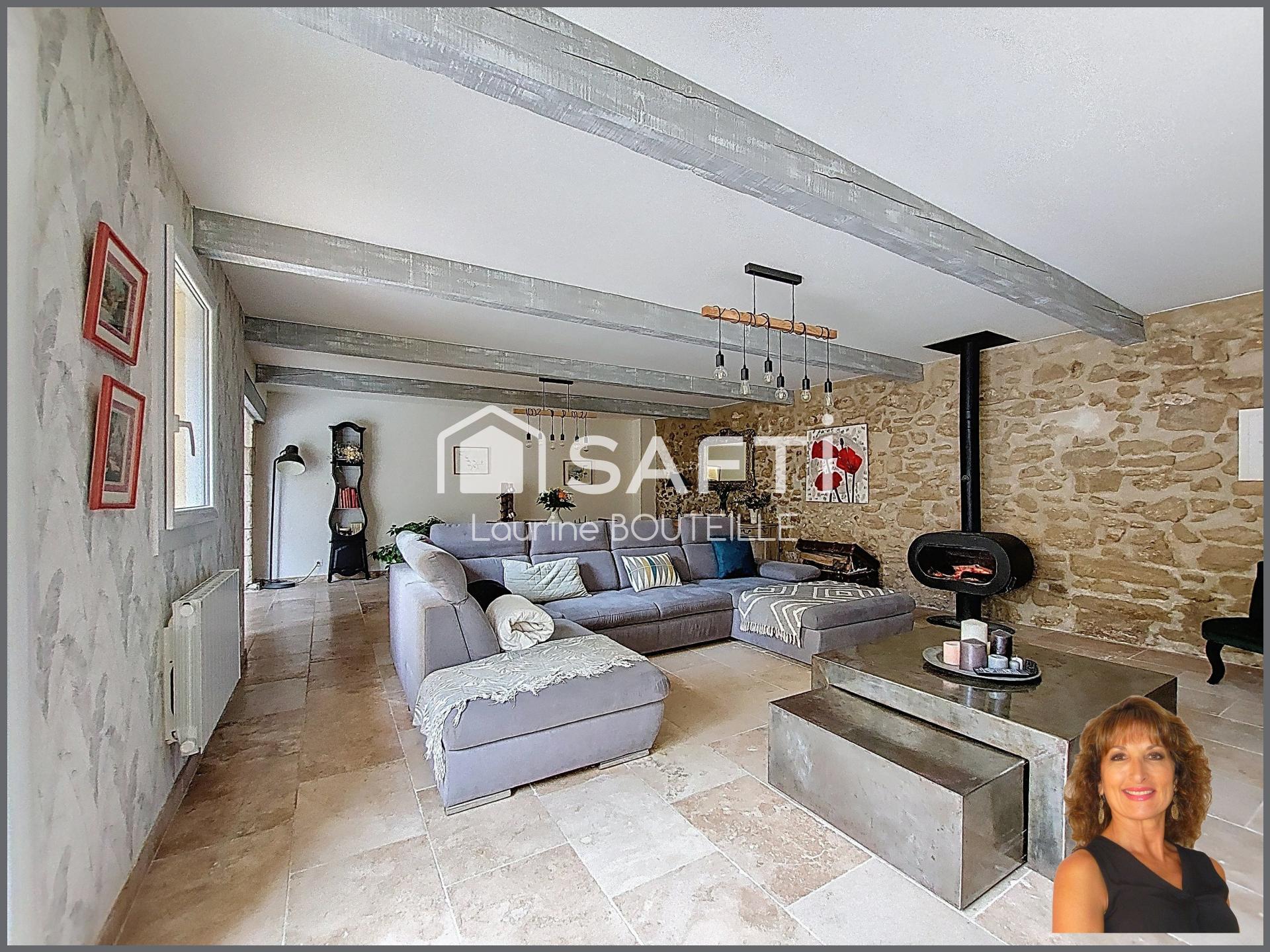 Les points forts : le double vitrage, des prestations de qualité (sols en travertin, climatisation, murs en pierres, poutres et plafonds à la française), 5 chambres, 2 salles d'eau et 3 wc, une piscine et stationnement pour un véhicule, ajoutent un confort rare à cette demeure au charme incontestable..