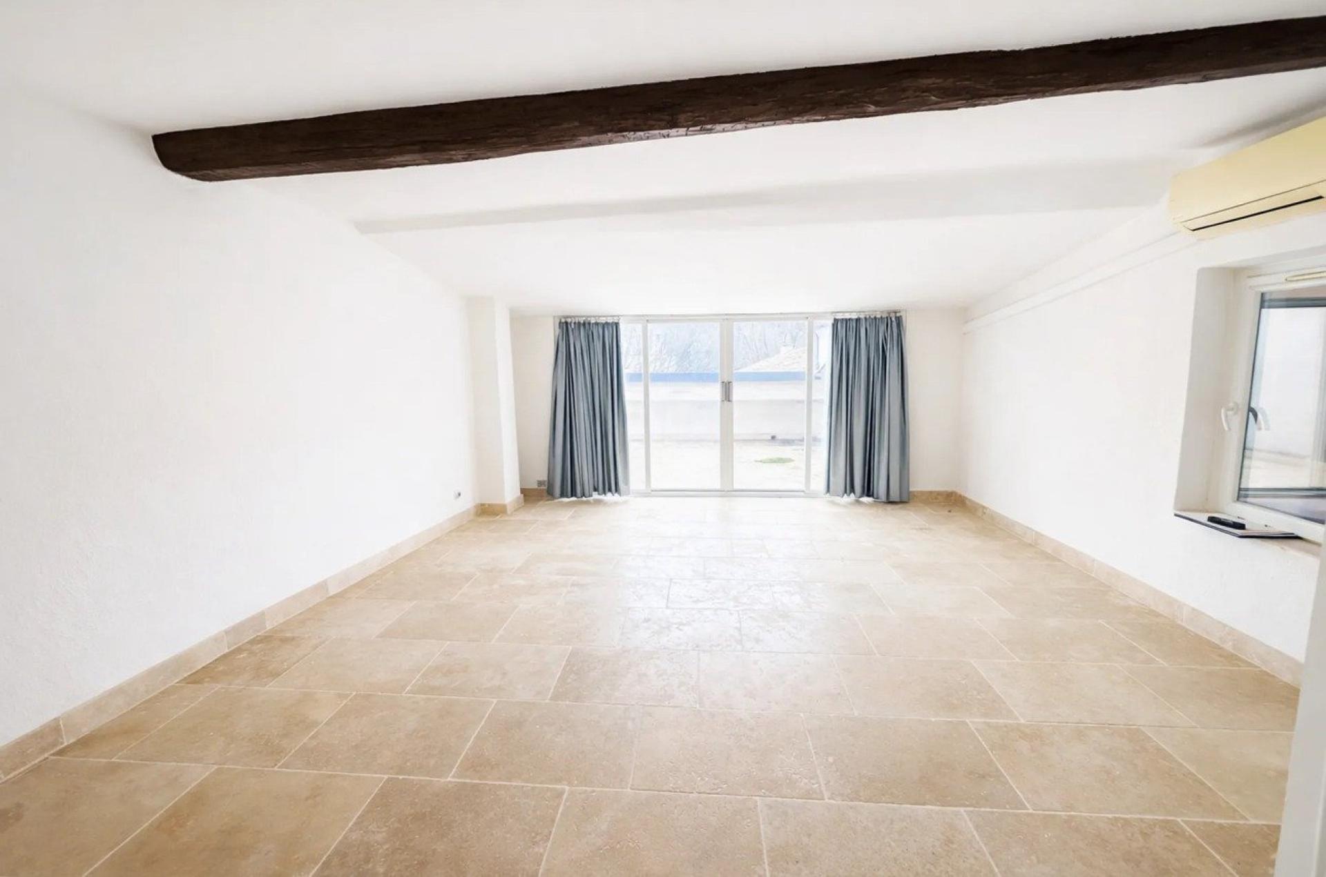 À l’intérieur, la maison dévoile une rénovation soignée et harmonieuse, mise en valeur par un revêtement en travertin présent sur l’ensemble des pièces. La cuisine ouverte sur la salle à manger bénéficie d’une belle luminosité, créant un espace convivial et chaleureux. La maison se compose de trois chambres, dont une particulièrement spacieuse et baignée de lumière, avec accès direct à la terrasse tropézienne. Une salle de douche et un WC indépendant complètent l’ensemble. Le confort est assuré toute l’année grâce à la climatisation réversible.