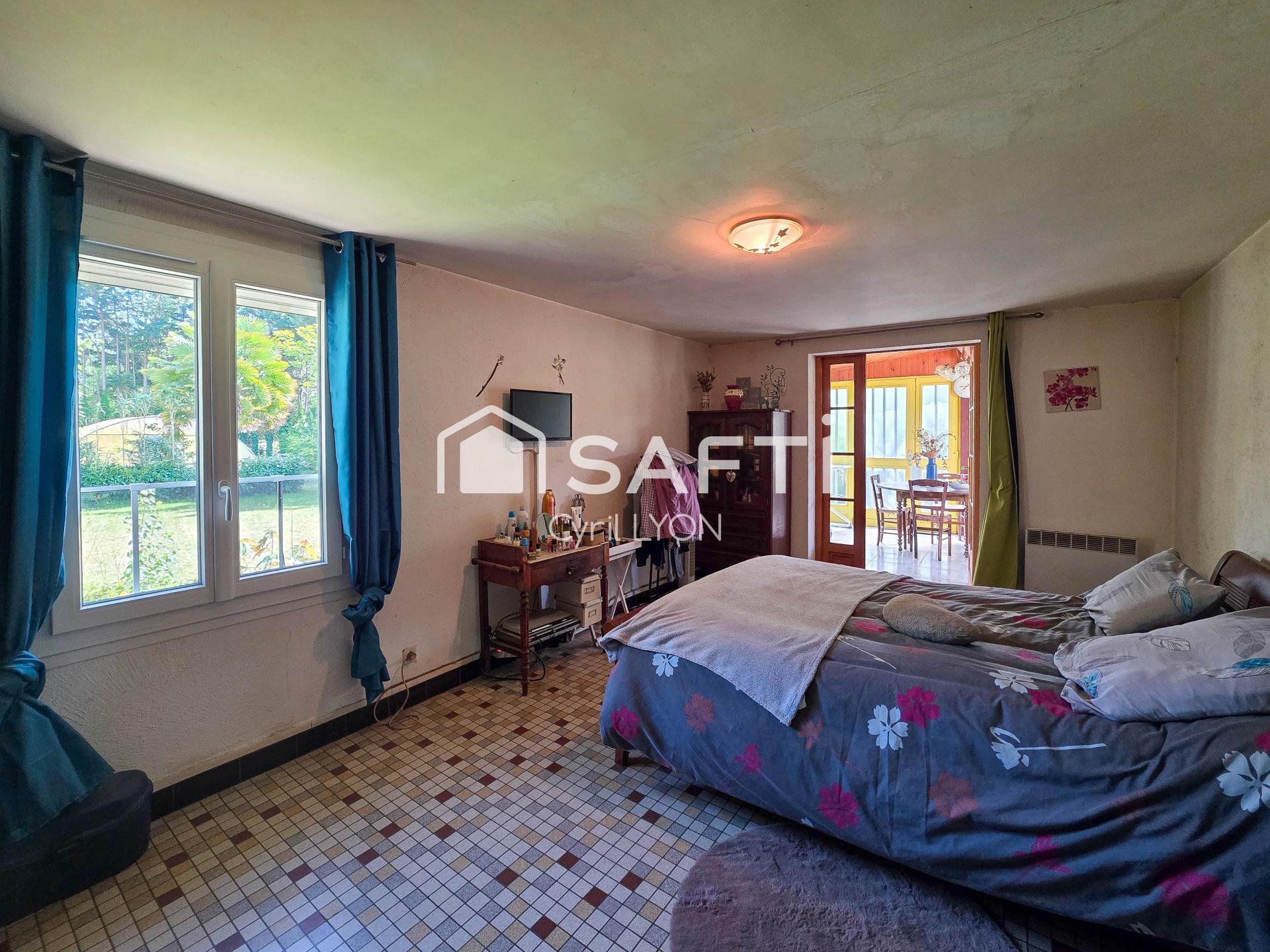 Le jardin est joliment arboré et clôturé (arrosage intégré) offrant calme et intimité avec un accès au deuxième terrain de 3269 m2 avec box à chevaux.