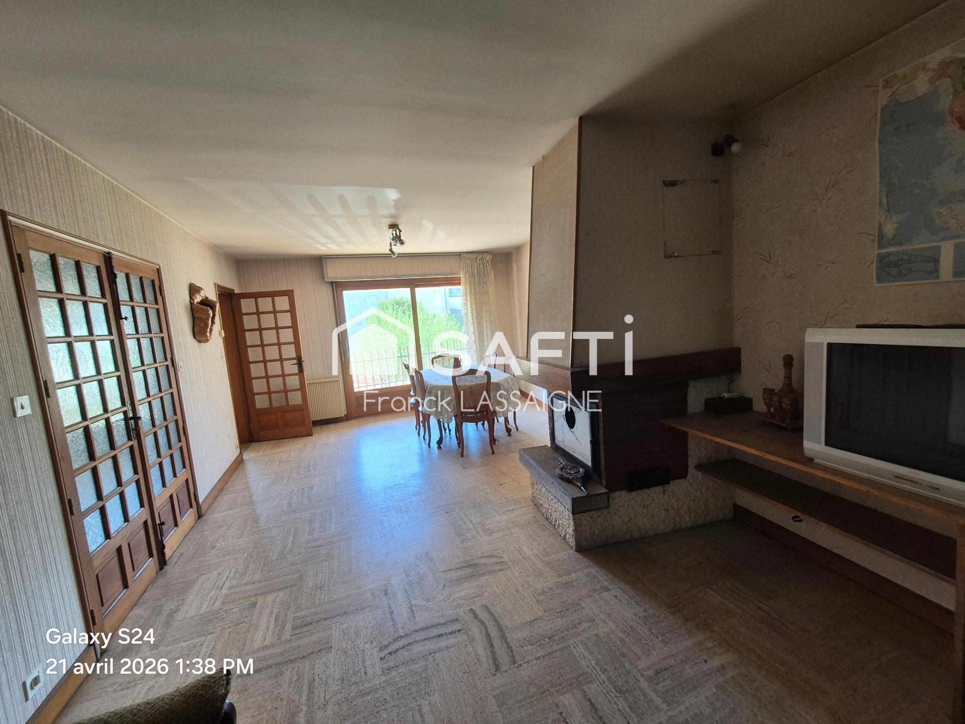 Située en plein coeur du centre-ville, cette maison de 125m² offre un potentiel exceptionnel pour les propriétaires ou investisseurs à la recherche d'un bien spacieux et bien situé... en rez-de-chaussée, grand garage, buanderie, cave, hall d'entrée. 1er étage Grande pièce à vivre avec cheminée avec balcon, cuisine équipée, 1 chambre, wc. 2e étage 3 chambres, 1 salle de bains, wc... Combles aménageables selon vos besoins... Cette maison est idéale pour une famille ou investissement locatif. Chauffage électrique et bois. Estimation des coûts annuels d'énergie du logement entre 2940 et 4040 euros... N'hésitez pas à me contacter par téléphone...