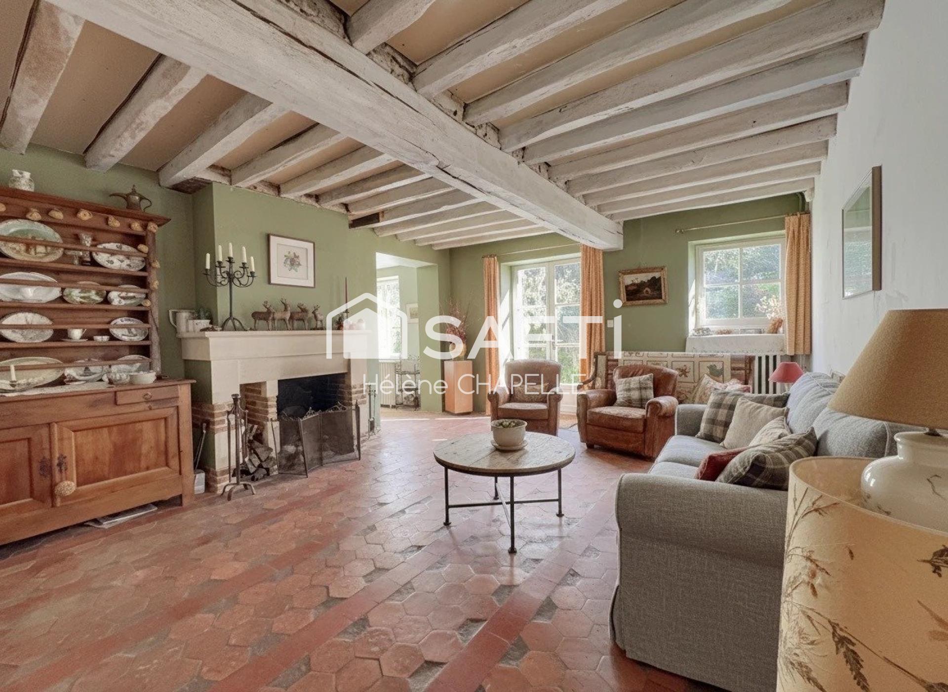 J'offre un véritable cachet avec mes tomettes, poutres apparentes, cheminée, parquet ancien, tout en bénéficiant d'une cuisine moderne avec vue sur le jardin.