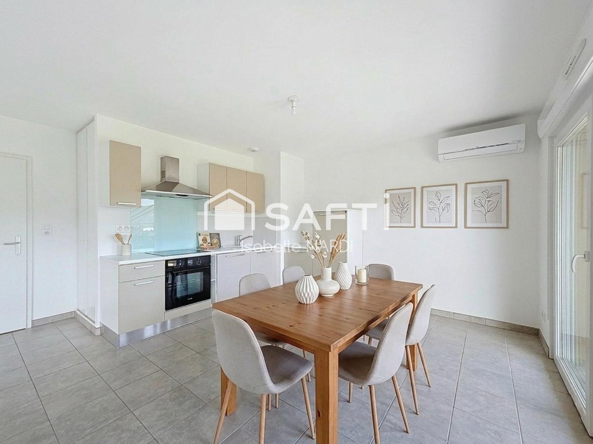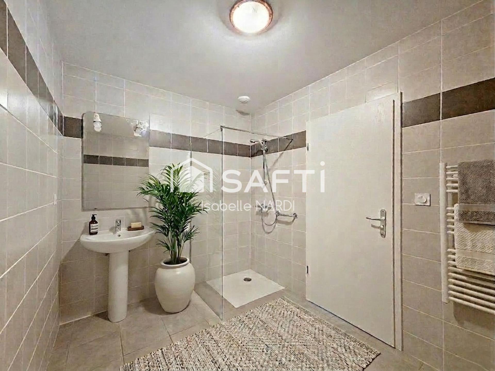 Dès l’entrée, vous serez séduit par une spacieuse et lumineuse pièce de vie, offrant un espace chaleureux et convivial, ouverte sur une cuisine moderne entièrement équipée. Cet espace s’ouvre directement sur une agréable terrasse, parfaite pour profiter des beaux jours en toute tranquillité.