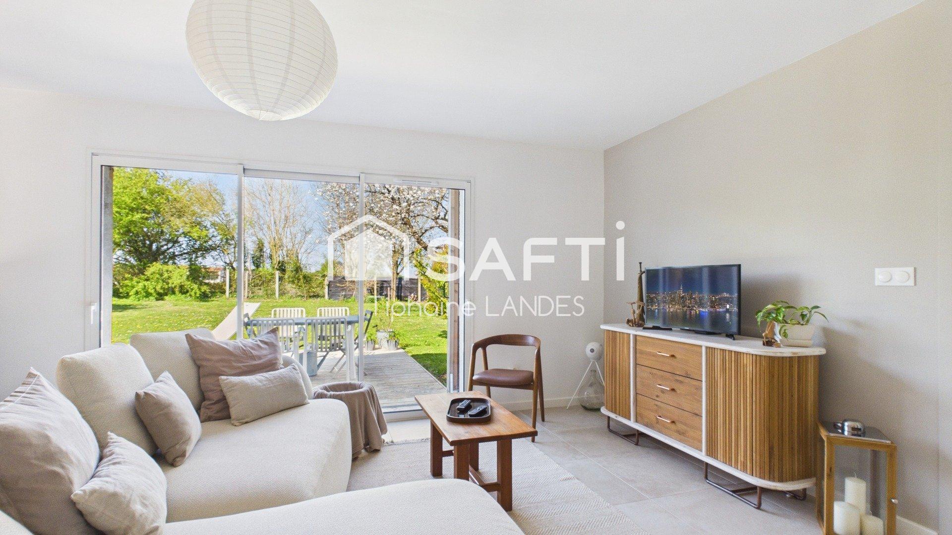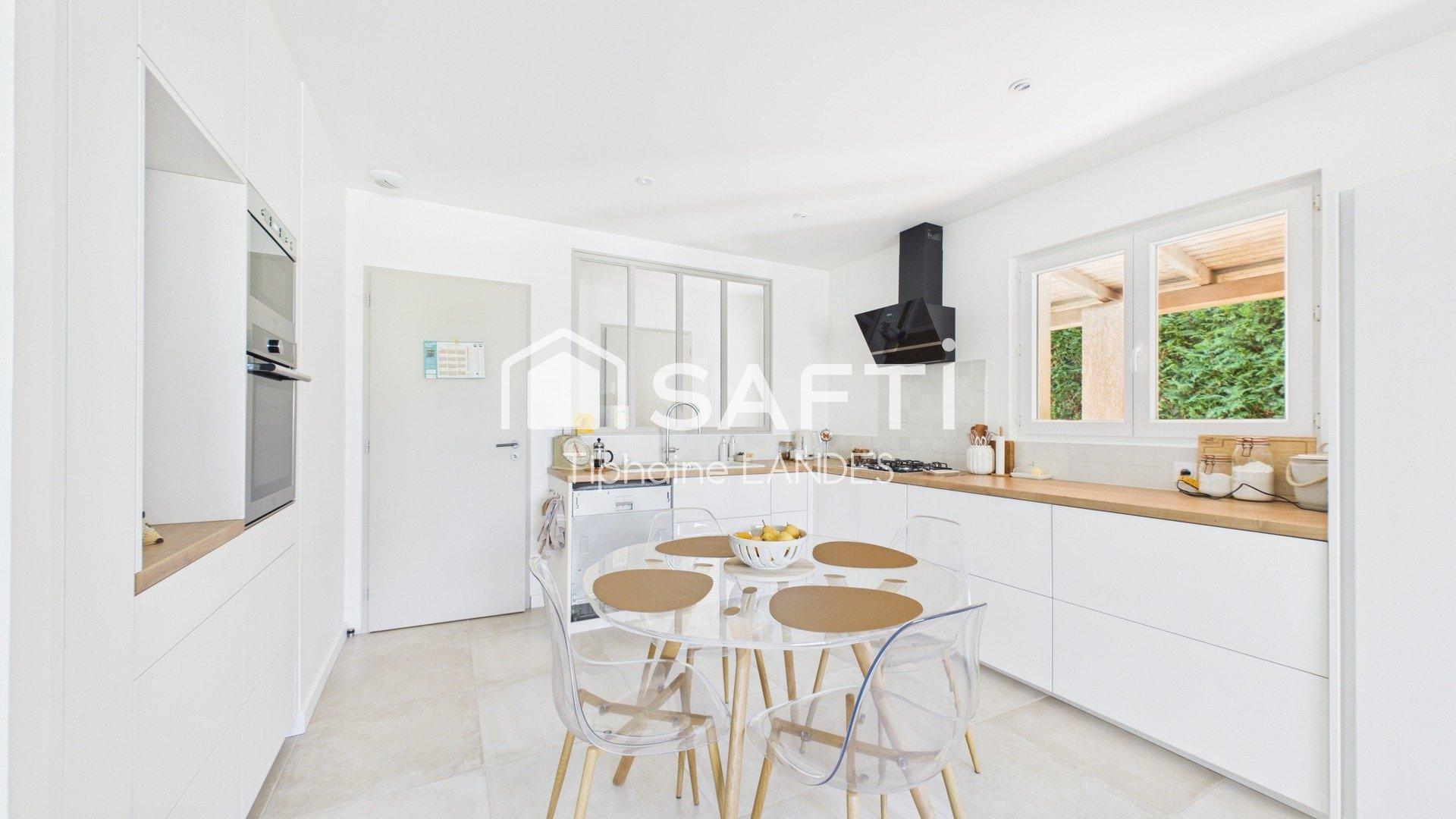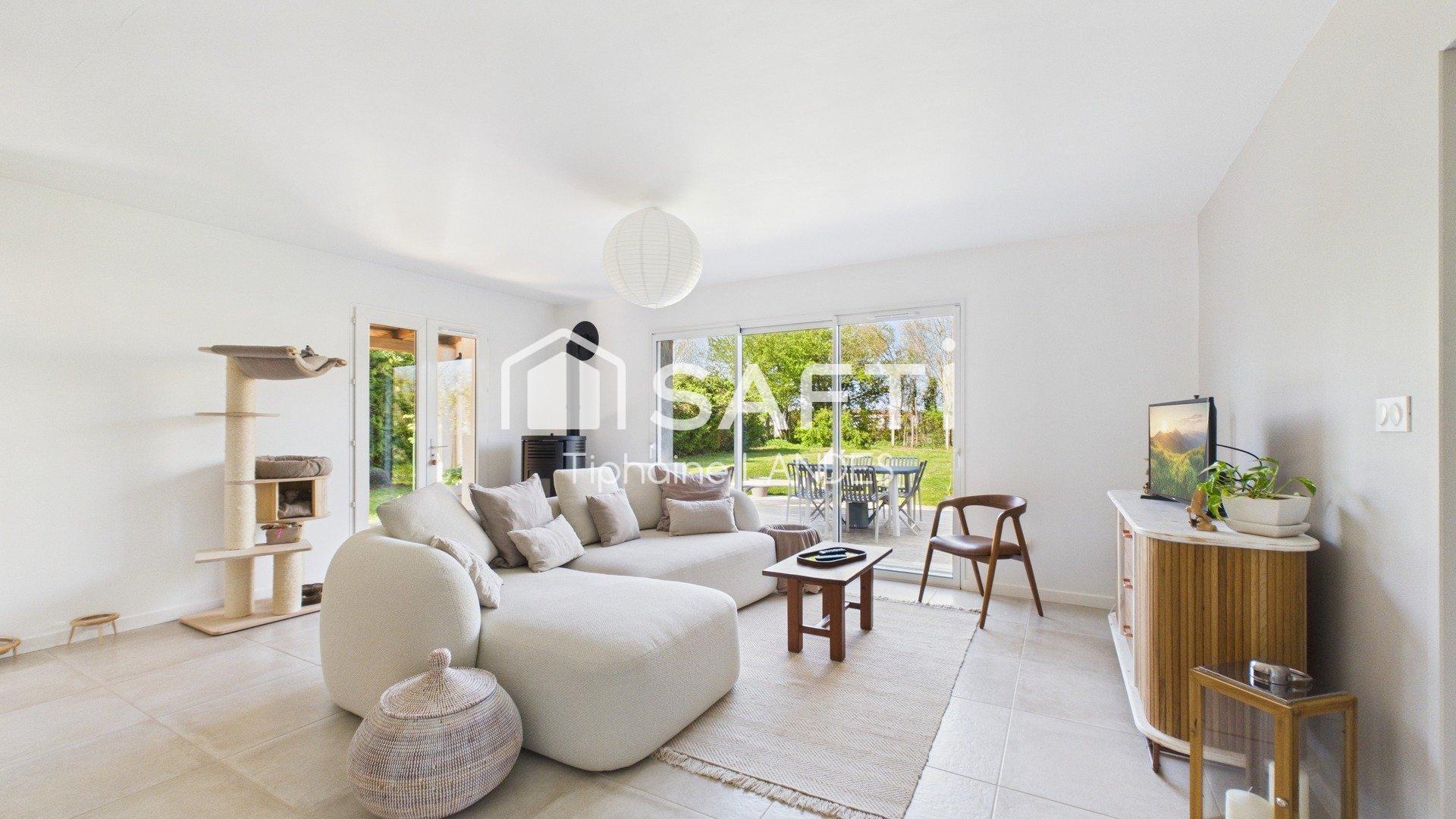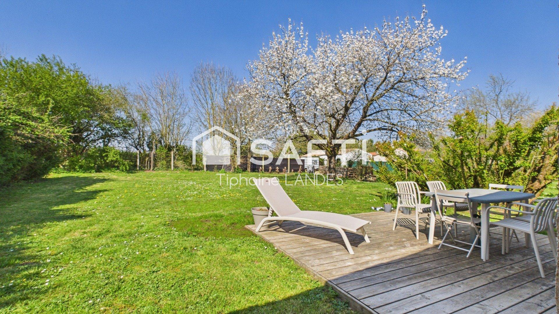 Construite sur un spacieux terrain clos et arboré de 1000m², cette maison rénovée de plain-pied de 104 m² offre un espace de vie confortable et fonctionnel sans aucune mitoyenneté.
