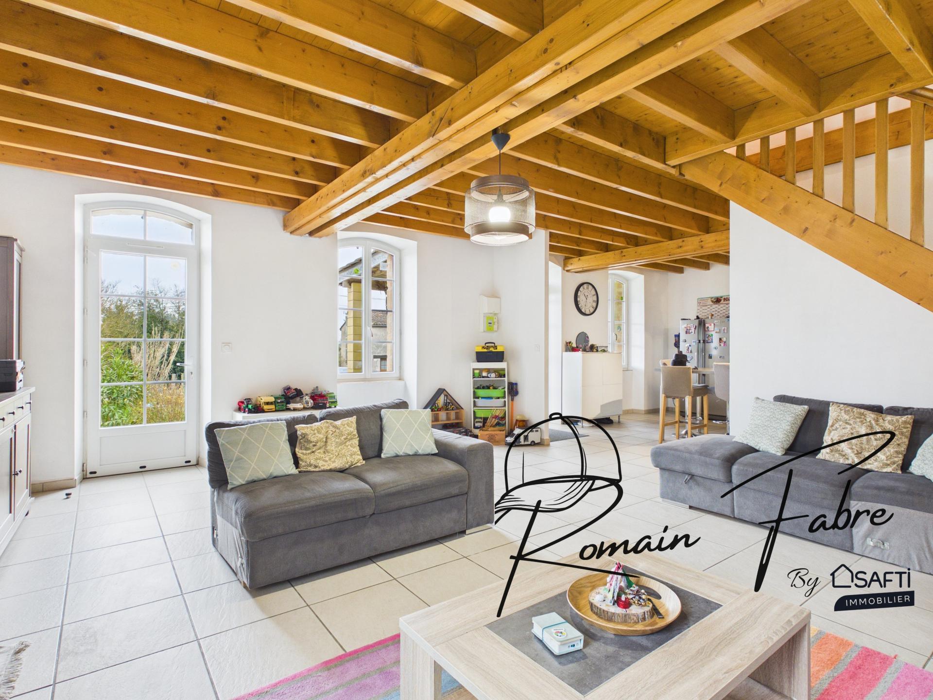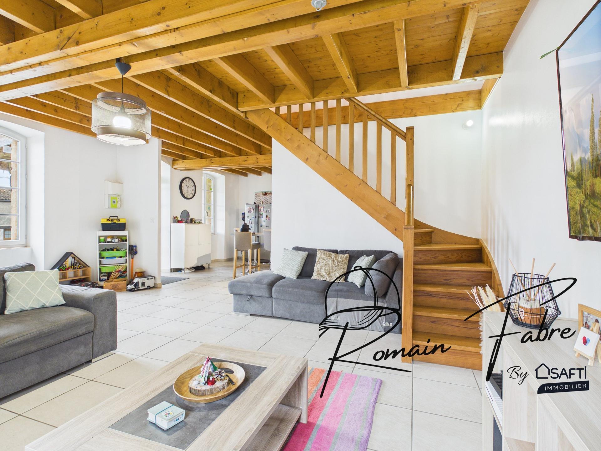 Maison en pierre sur 2 niveaux rénovée avec poutres apparentes, 4 chambres, dépendances et garage