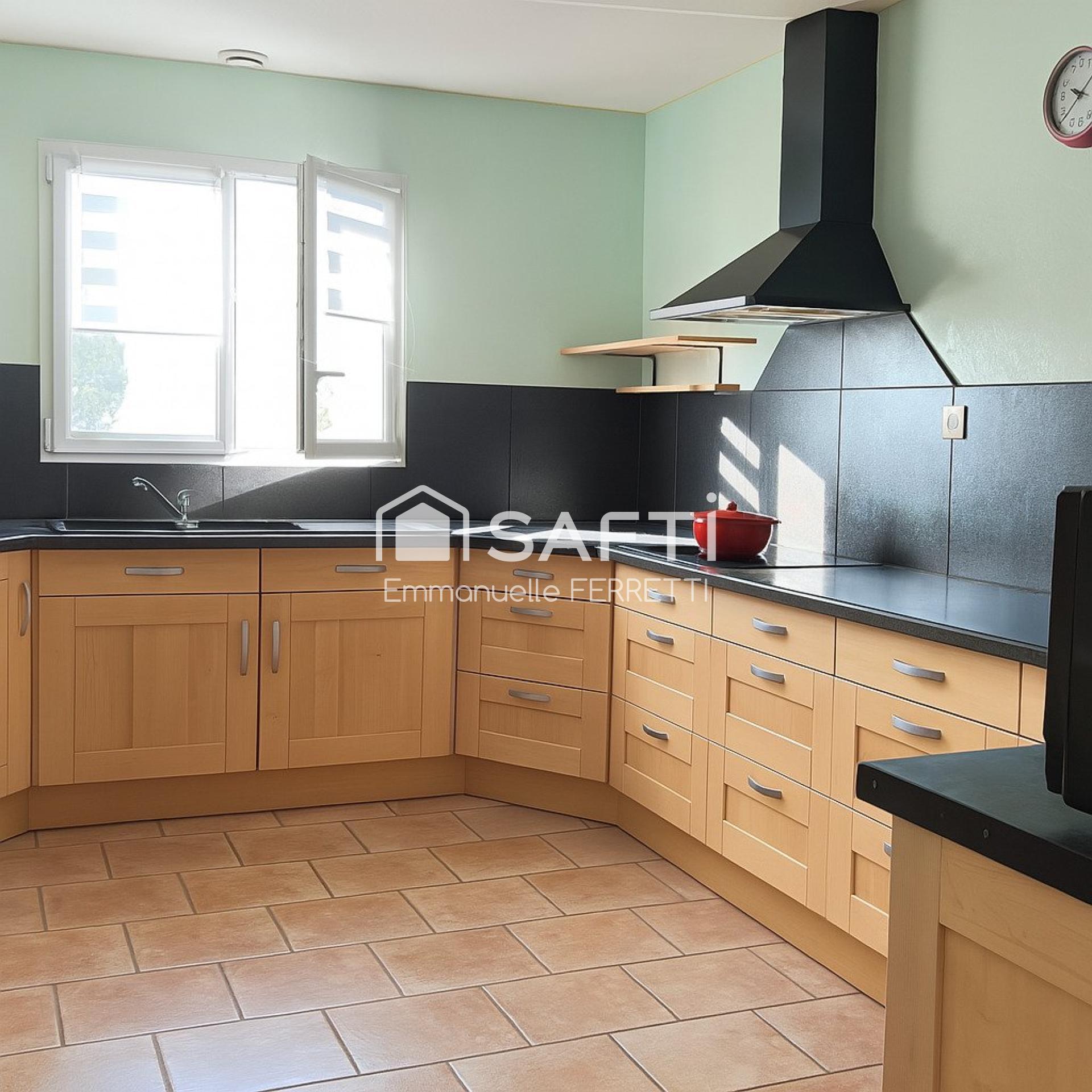 La cuisine indépendante, fonctionnelle, dispose d’une arrière-cuisine attenante.