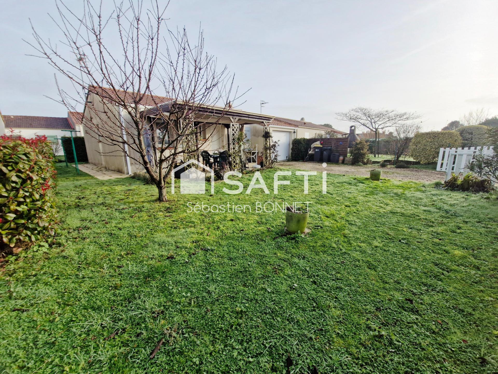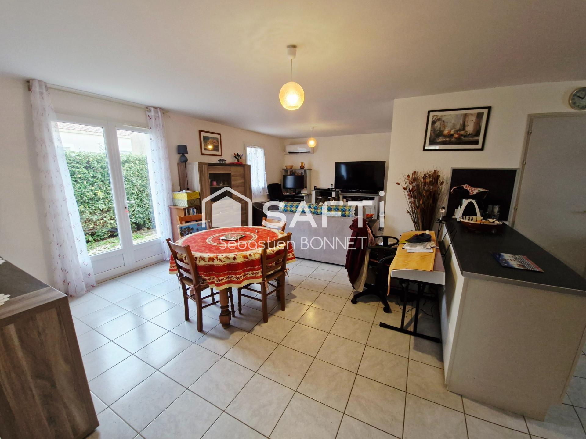 Safti vous propose à proximité du centre d'Angles et de ses commodités, cette maison de plain pied d'environ 63m² comprenant: Entrée, cuisine aménagée, salon/séjour avec climatisation réversible, deux chambres, salle d'eau, wc séparé et garage. Le tout sur une parcelle close de 320m²