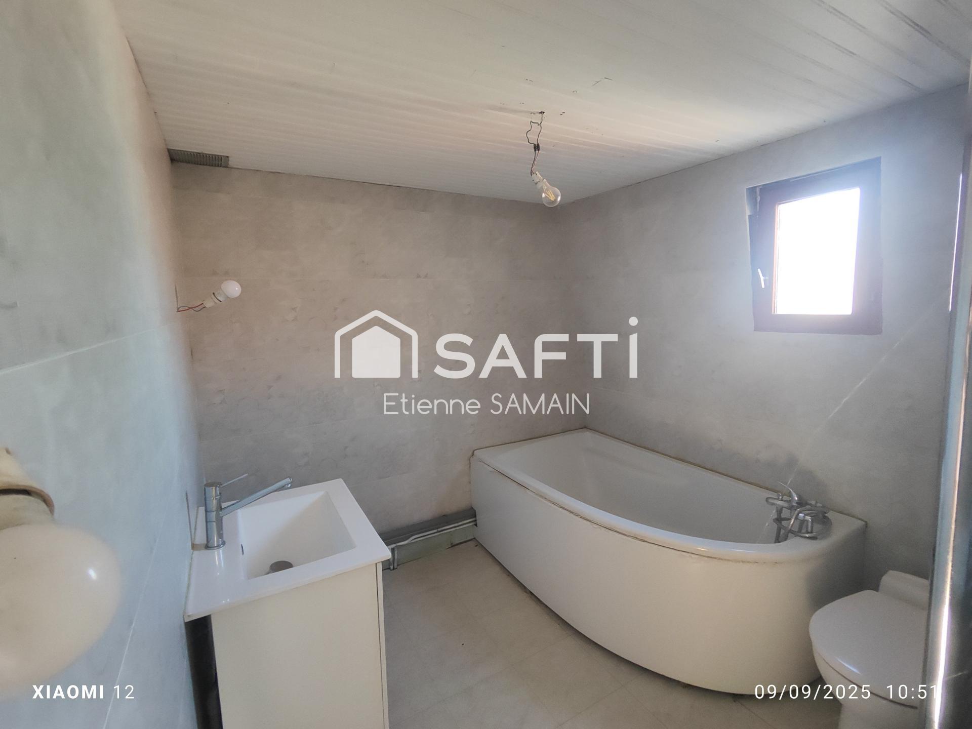 maison comprenant piéce à vivre cuisine toilette 4 chambres sdb cour