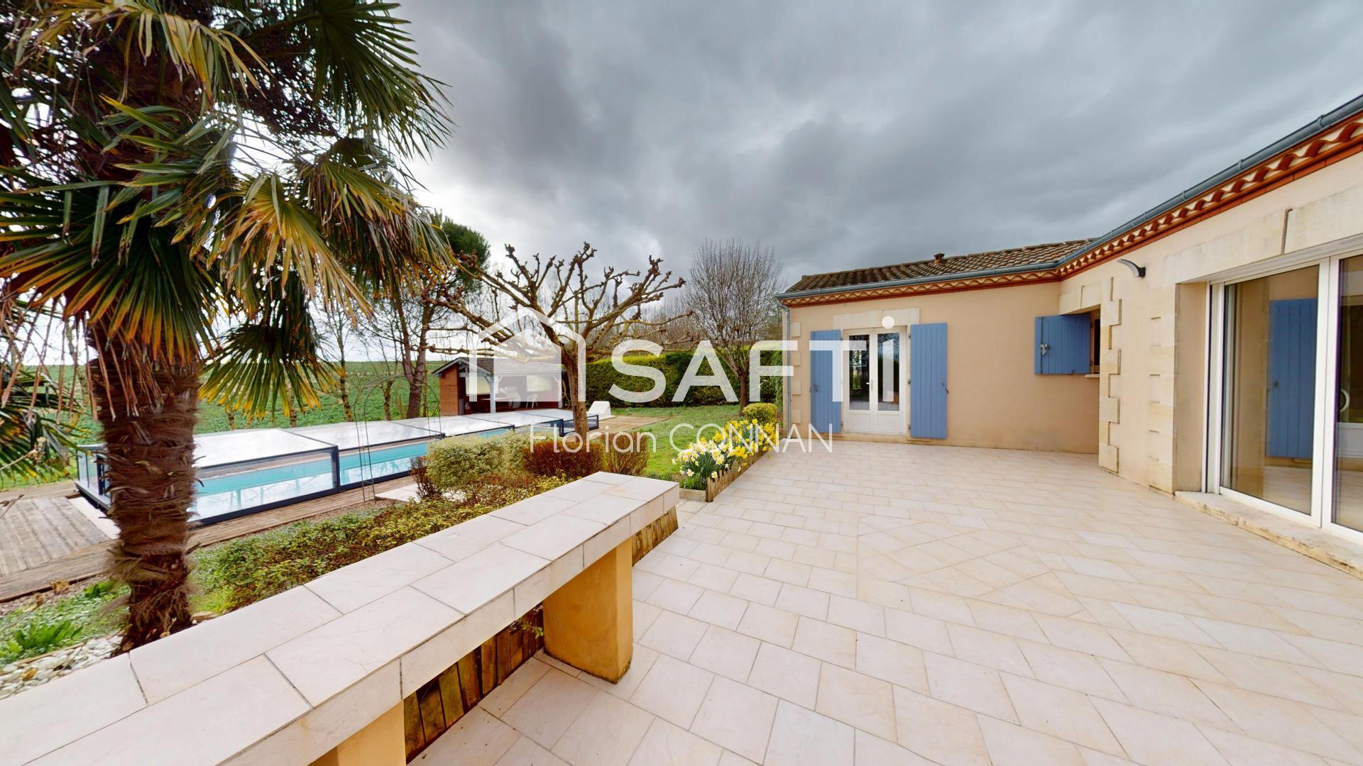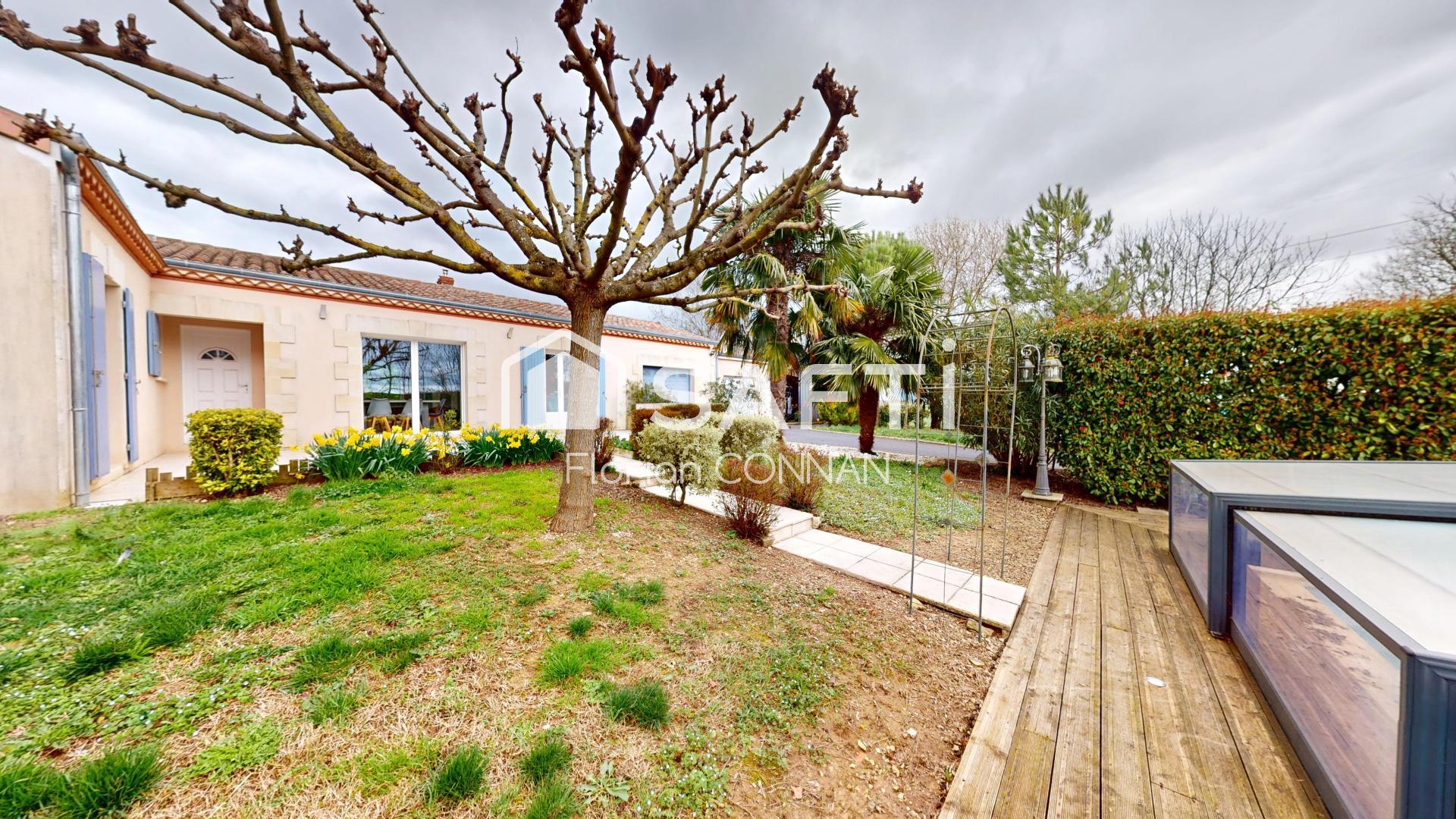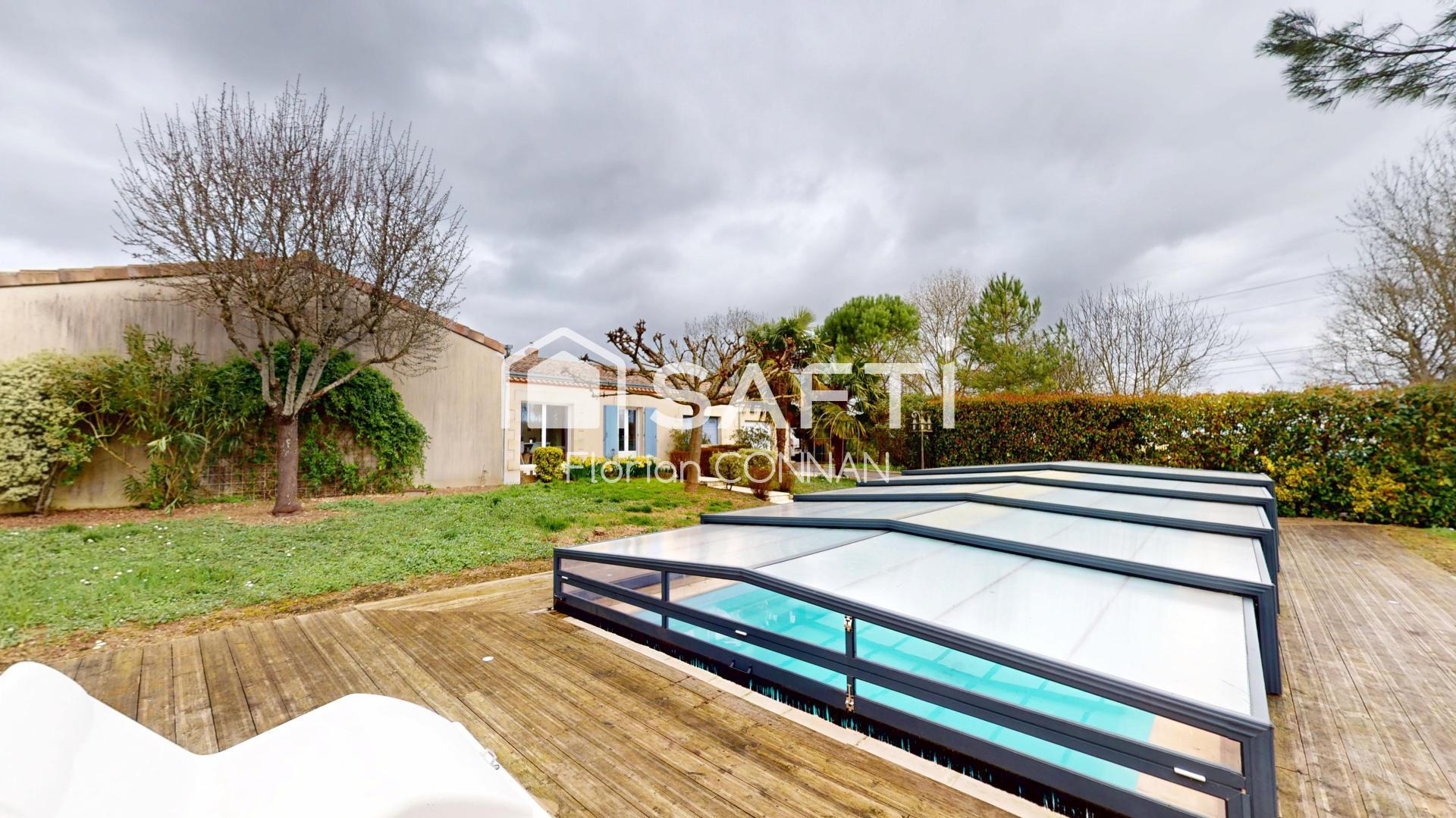 Situé à quelques minutes de St Jean d'Angély, je vous propose ce magnifique pavillon d'environ 147 m² sur une parcelle de plus de 3000 m². Présentation très simple: Un grand séjour / cuisine avec insert à granulés, buanderie/cellier, Arrière-cuisine, 5 chambres, 2 salle d'eau. Le tout s'accompagnera de 2 garages de 22 et 37 m², d'un appentis avec dalle béton de 32 m² et une cabane de jardin. Deux portails d'accès, piscine (11 x 5) avec dôme. Je n'en dis pas plus..... A VISITER SANS TARDER!