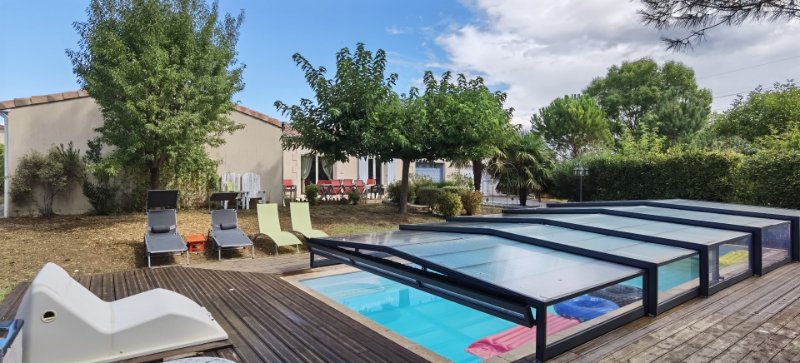 Situé à quelques minutes de St Jean d'Angély, je vous propose ce magnifique pavillon de 147 m² sur une parcelle de plus de 3000 m². Présentation très simple: Un grand séjour / cuisine avec insert à granulés, buanderie/cellier, Arrière-cuisine, 5 chambres, 2 salle d'eau. Le tout s'accompagnera de 2 garages de 22 et 37 m², d'un appentis avec dalle béton de 32 m² et une cabane de jardin. Piscine (11 x 5) avec dôme. Je n'en dis pas plus..... A VISITER SANS TARDER!