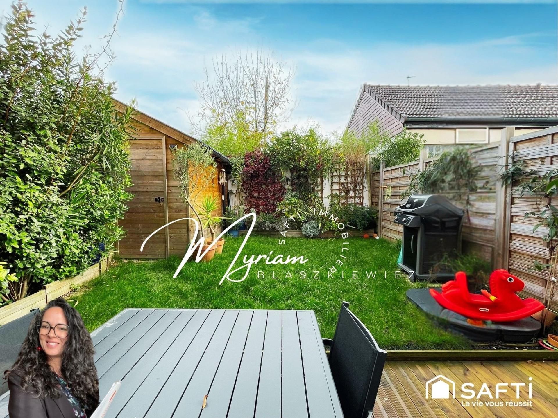À l’extérieur, deux jardins privatifs et une terrasse permettent de profiter des beaux jours, d’un potager, d’un jeu d’enfant ou d’un café matinal. Un cabanon, la fibre installée, deux places de stationnement et un chauffage collectif au gaz renforcent le confort quotidien.