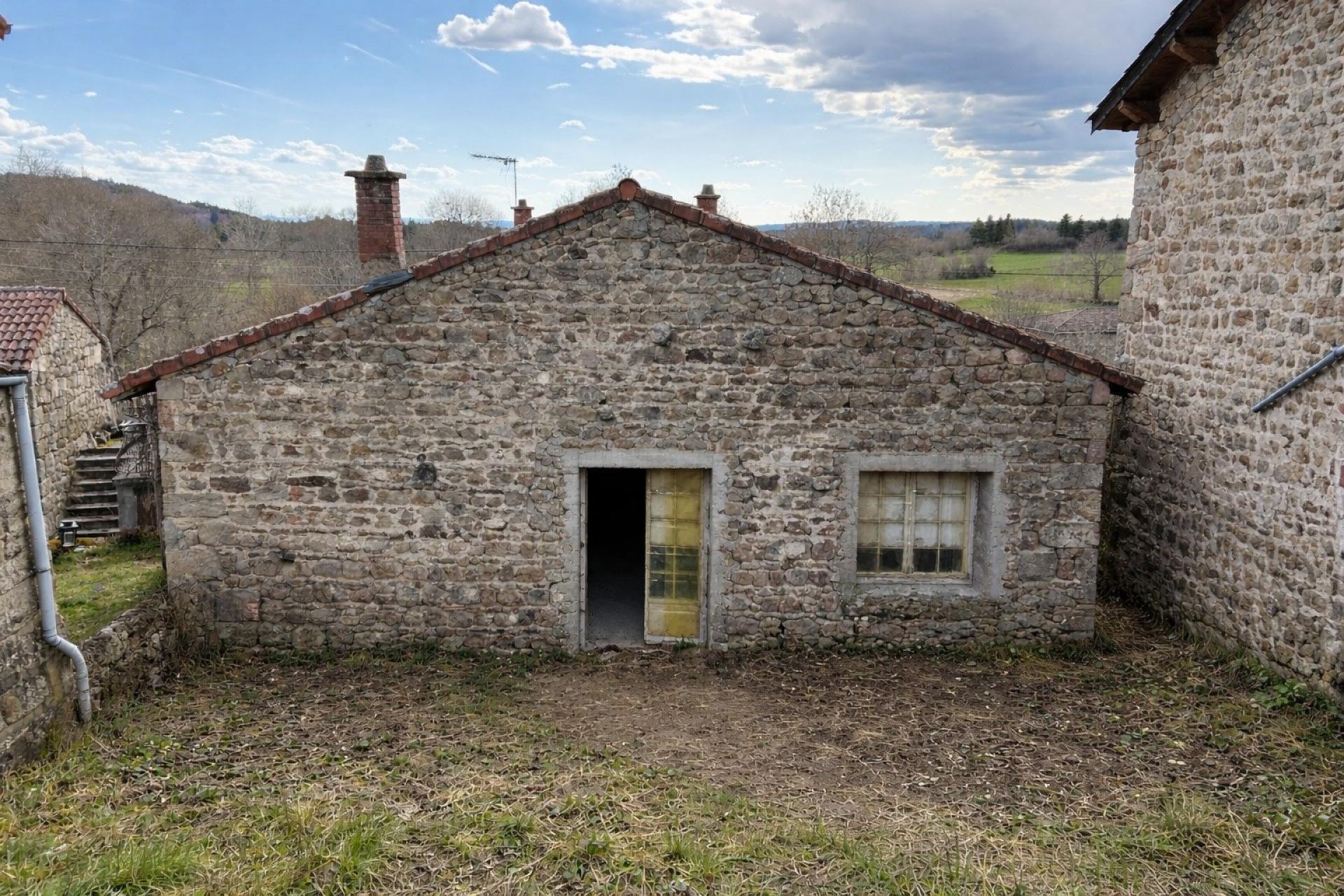 À l'intérieur, la maison se compose d'un hall d'entrée, d'une pièce de vie chaleureuse avec cheminée, d'une chambre, d'une cuisine séparée et d'une salle de bain avec WC, une dépendance pouvant servir de studio le tout offre un confort optimal pour ses habitants. À cela s'ajoute un appartement à rénover selon vos goûts, offrant de belles perspectives d'aménagement personnalisé. Enfin, la présence d'une cour partagée complète cet ensemble immobilier, garantissant convivialité et esprit communautaire.