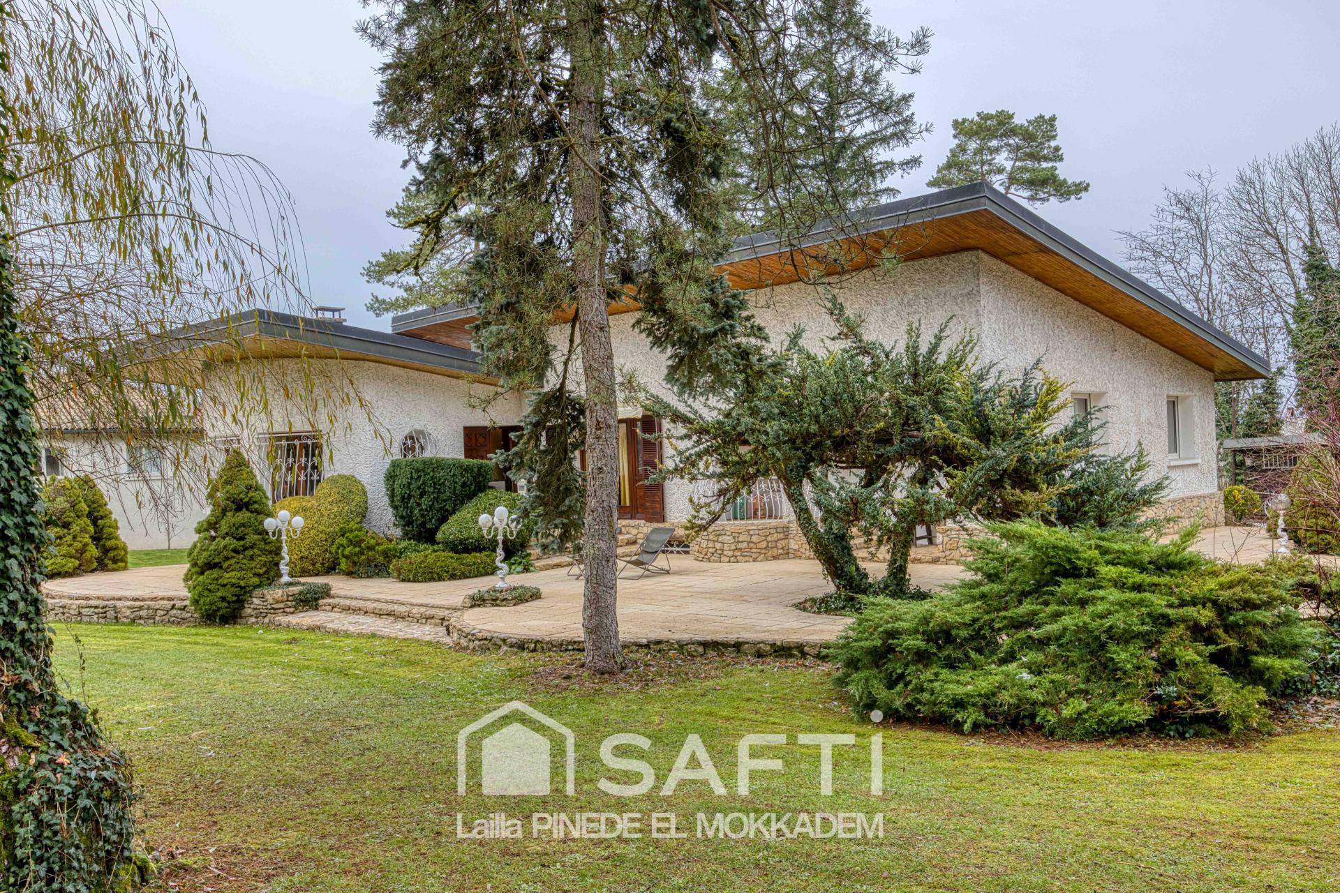 À l’extérieur, la maison s’ouvre sur un splendide parc arboré de 4 000 m², véritable havre de paix.