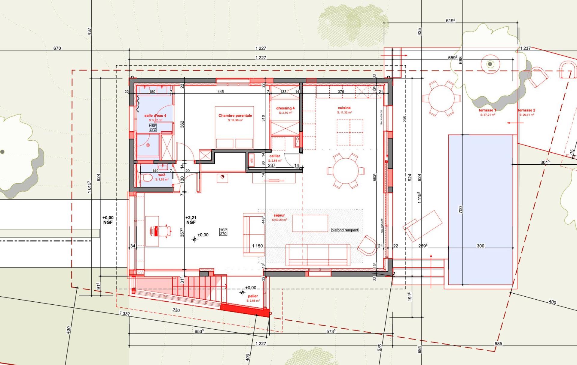 Piscine, pool house, terrain de boules agrémentent l’extérieur de ce projet à créer sur mesure suivant vos envies dans un quartier de renom.