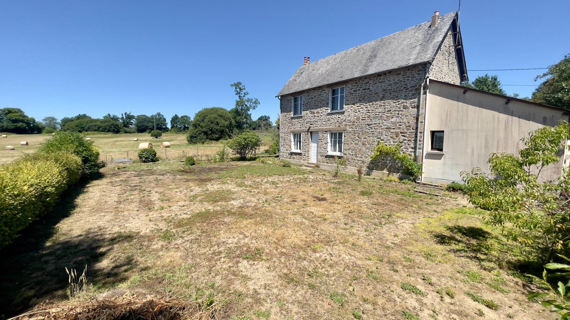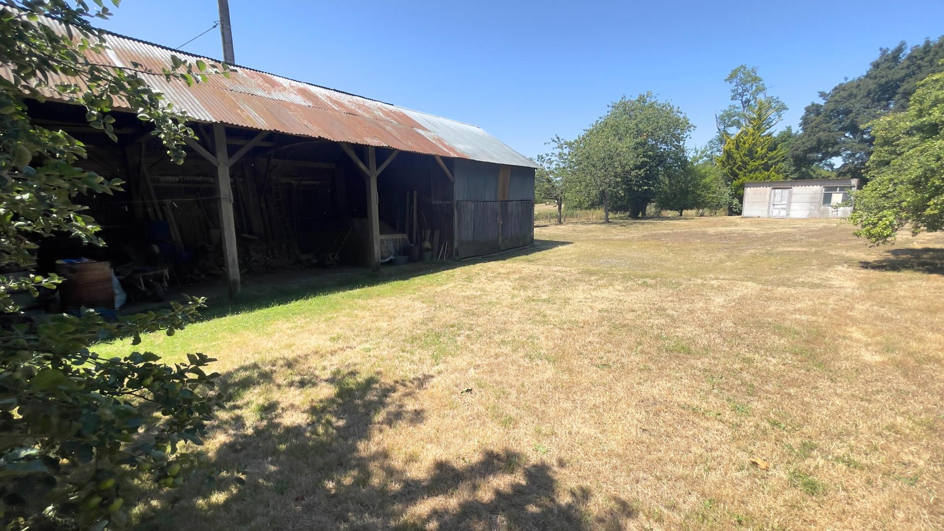 ARON, en campagne au bout du chemin, maison d'habitation comprenant séjour/cuisine aménagée, deux chambres, salle d'eau, cellier, possibilité d'agrandissement sur terrain constructible, dépendance, hangar, terrain arboré de fruitiers de plus de 3.300m².