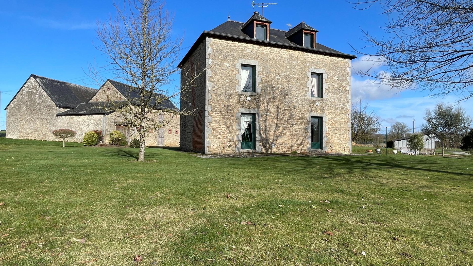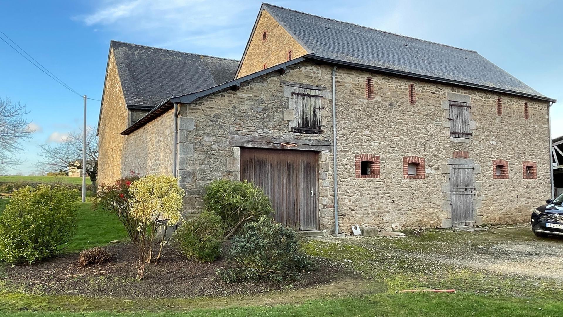 ARON, Corps de ferme comprenant une habitation principale soigneusement entretenue, offrant un séjour/salon avec accès terrasse, une cuisine aménagée et équipée, quatre chambres, une salle d’eau ainsi qu’un grenier aménageable et cave. Grande dépendance à usage de garage, le tout sur un terrain d’environ 4600 m².