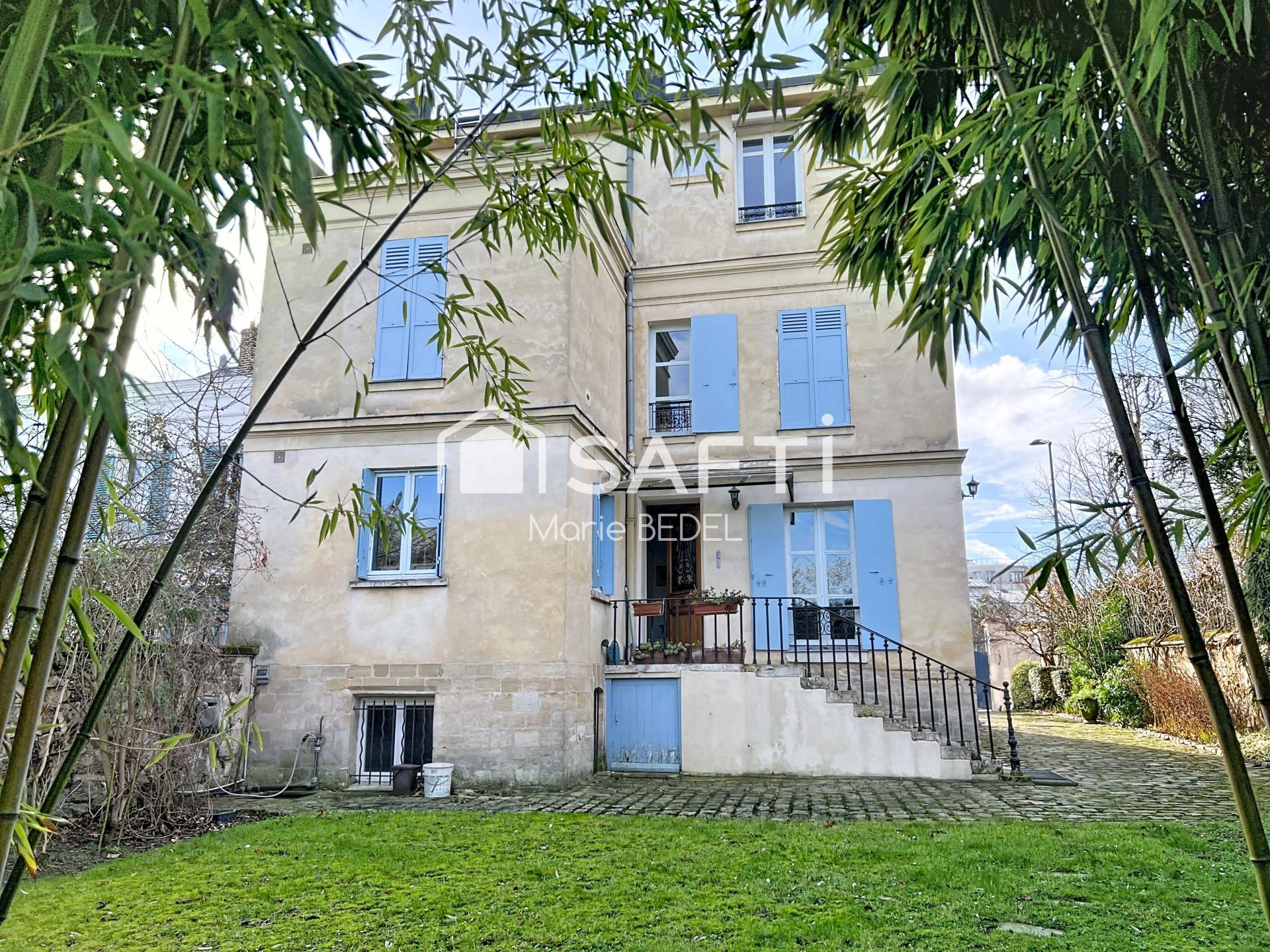ASNIÈRES-SUR-SEINE – BAC / MAGENTA - À quelques minutes à pied de la gare d’Asnières (Paris Saint-Lazare) et des commerces du centre-ville, cette maison familiale de caractère développe environ 190 m² habitables (250 m² au total) sur un terrain arboré de près de 600 m², rare dans le secteur.