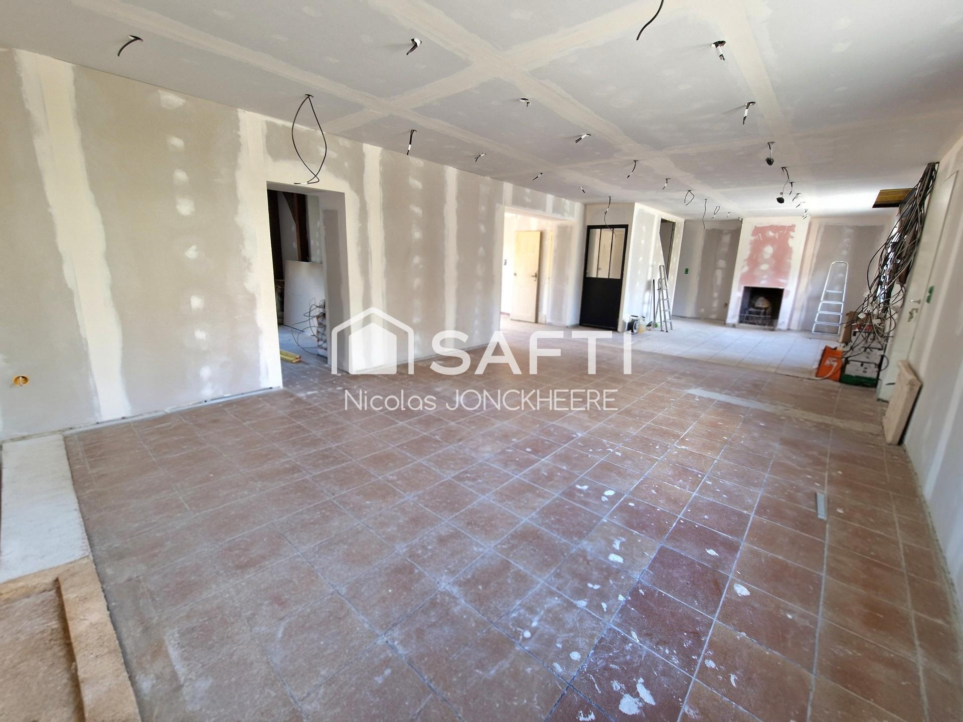 Les travaux déjà effectués: menuiseries neuve, électricité, isolation, placo, plomberie, etc.