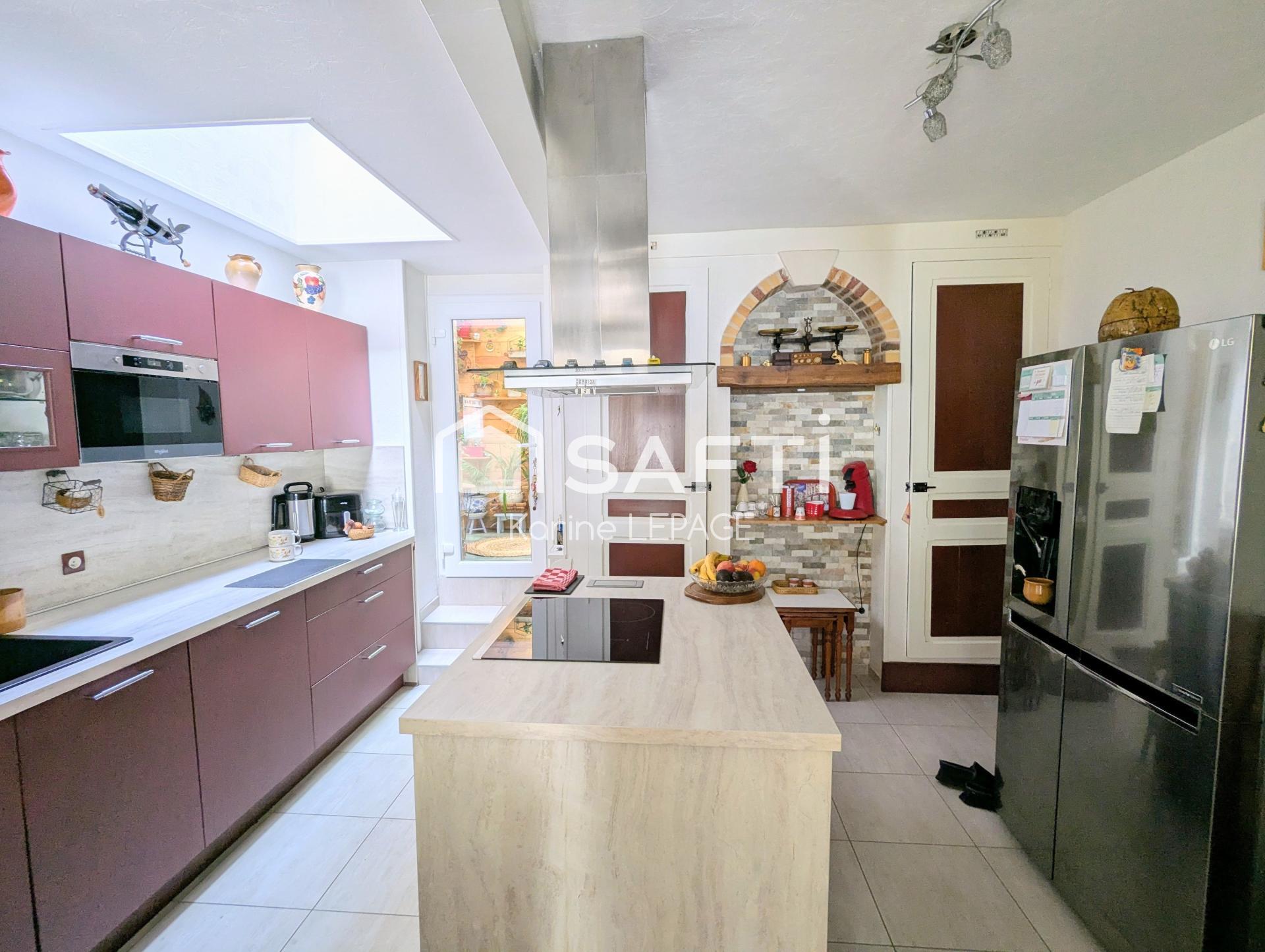 Au rez de chaussée, une superbe pièce de vie intègre une cuisine très récente et entièrement équipée. L'espace est optimisé avec une cavité dédiée à l'adoucisseur d'eau.