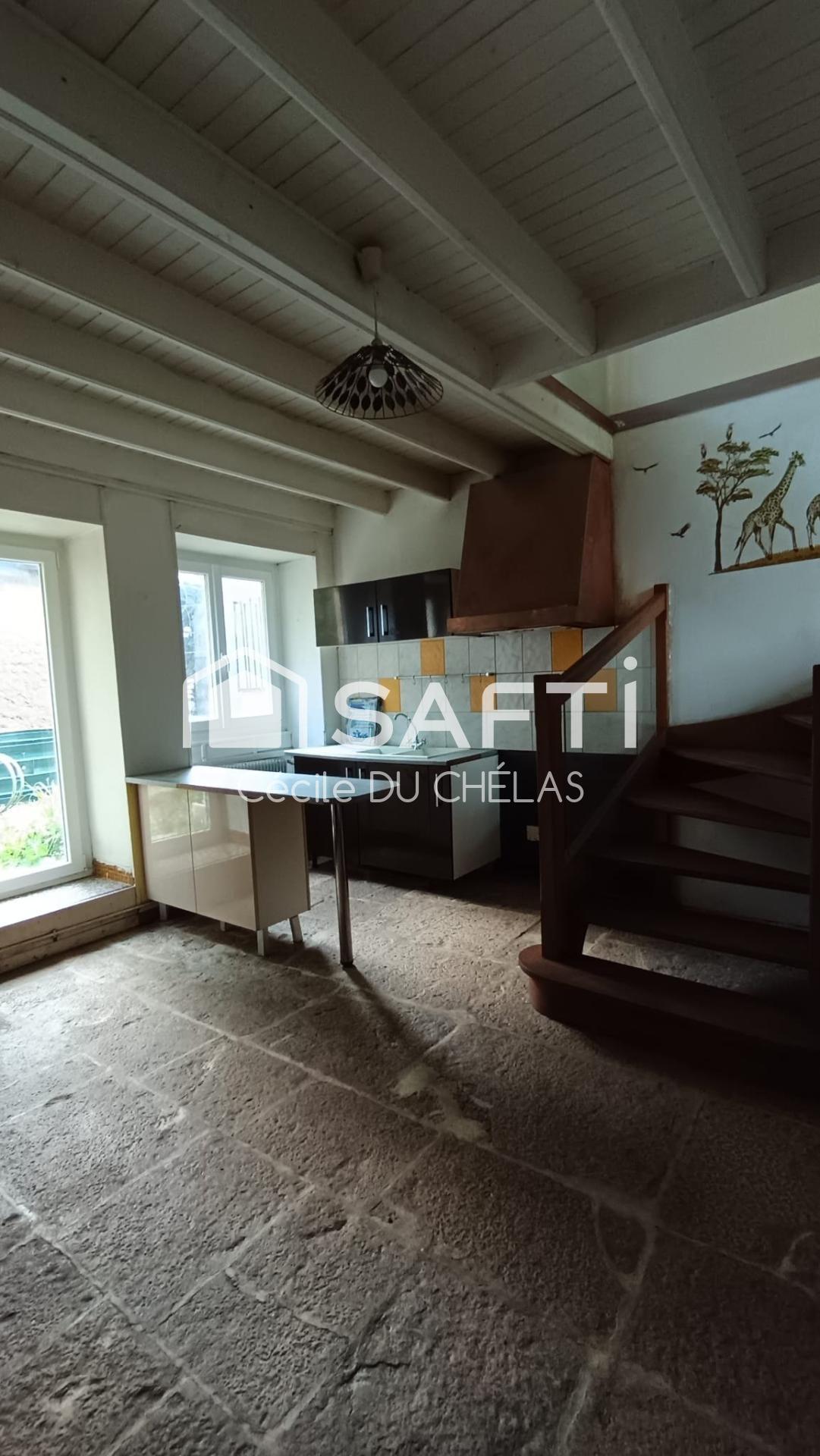 À l'extérieur, la maison présente une façade en pierre pleine de caractère, typique de la région. Un jardin attenant offre un espace extérieur agréable. De plus, une cave voutée ajoute du cachet à la propriété et permet un espace de stockage supplémentaire.