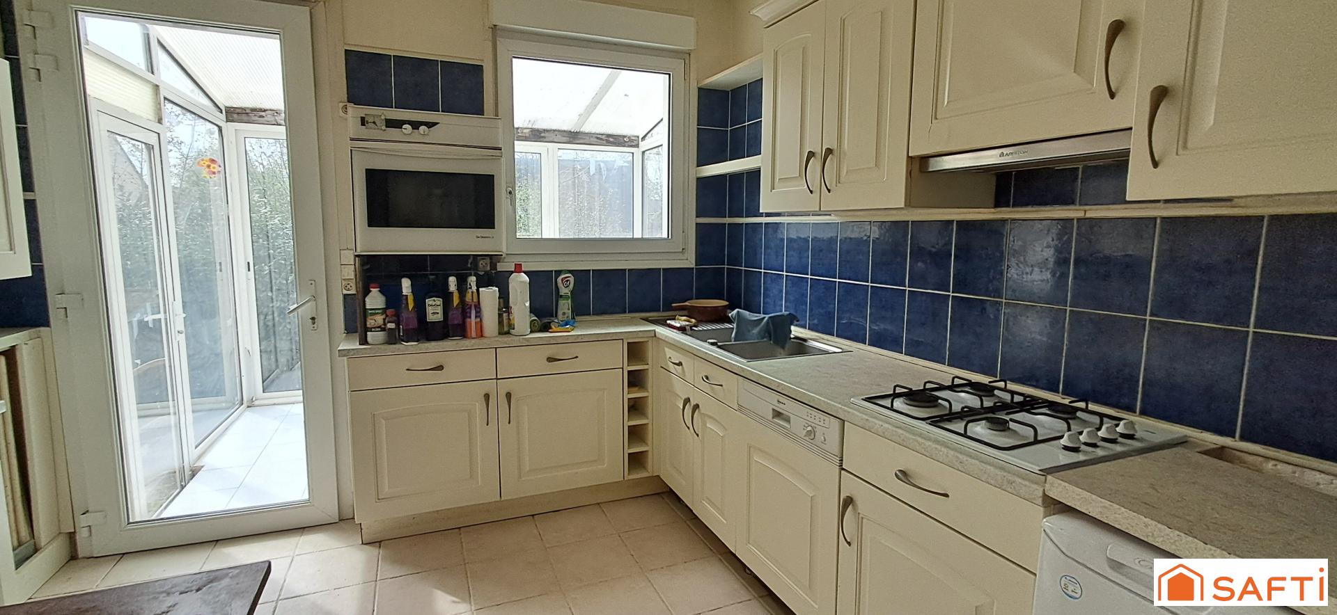 Cette maison de 111 m², érigée sur un terrain de 681 m², propose un agencement fonctionnel avec une véranda d'entrée, une cuisine équipée, un salon lumineux, 4 chambres, une salle de bains, ainsi que 2 toilettes. Datant de 1960, le pavillon en tuiles plates s'accompagne d'une dépendance attenante (aménagée en studio) et d'un espace extérieur clos, offrant une atmosphère conviviale et chaleureuse pour une vie de famille harmonieuse.