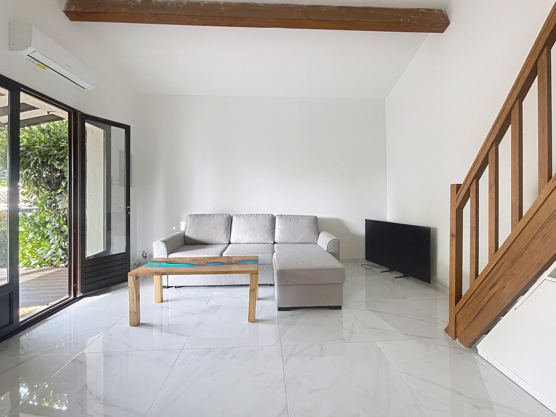 Située au calme dans un domaine sécurisé avec piscine, tennis et aire de jeux, cette maison comprend une pièce de vie climatisée, une cuisine et salle d’eau neuves, ainsi qu’une chambre avec dressing.