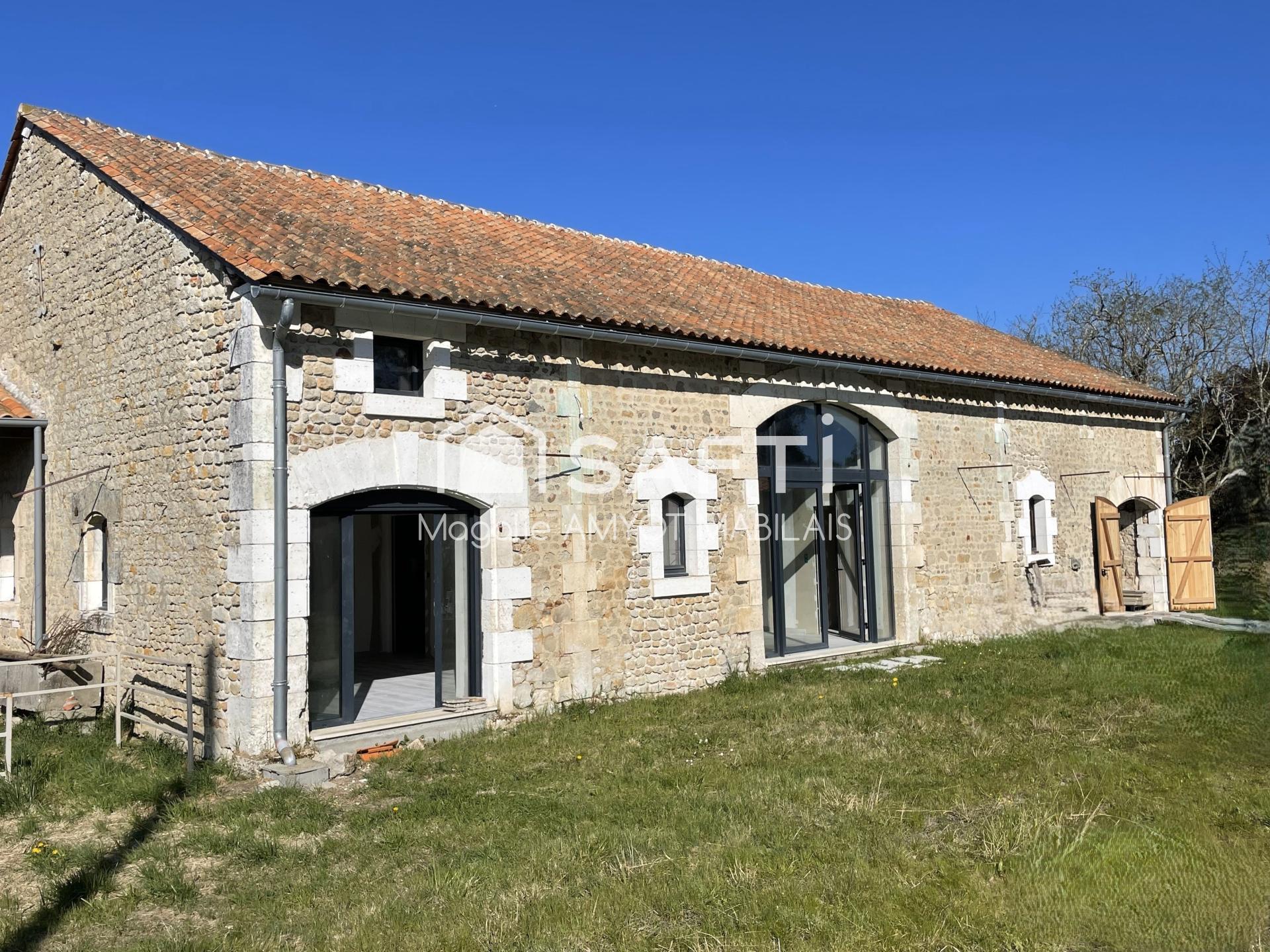 => une charentaise à réhabiliter totalement d'environ 160m² + un étage (toiture récente, électricité refaite, beaux volumes avec cheminées anciennes, pas de chauffage)