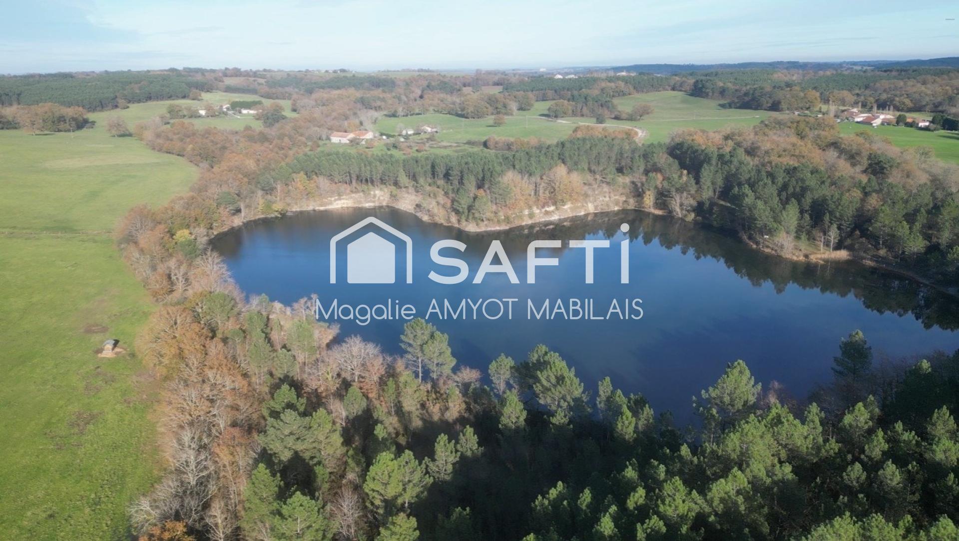 =>Le terrain est un joyau naturel : bois mixte exploitable, prairies, réserve de chasse, et un splendide étang privé de 5 ha empoissonné, idéal pour la pêche sportive ou le tourisme halieutique.