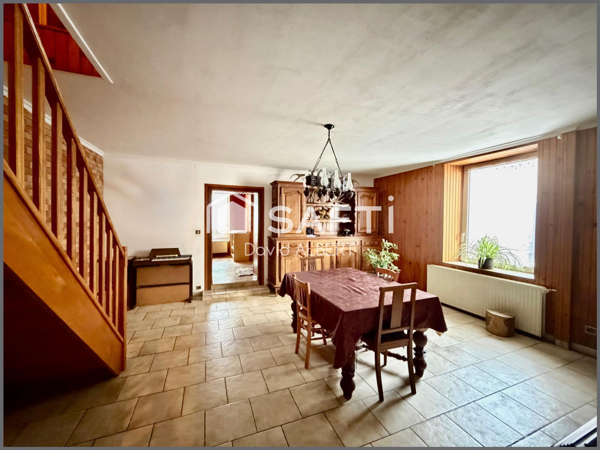 À Bannoncourt votre conseiller immobilier safti vous propose cette grande maison familiale de 222 m2 habitable , sans mitoyenneté avec son petit jardin clos et sa terrasse . Au rez-de-chaussée vous trouverez une entrée sur couloir , une grande cuisine dînatoire avec un cellier attenant , un salon et une salle à manger .