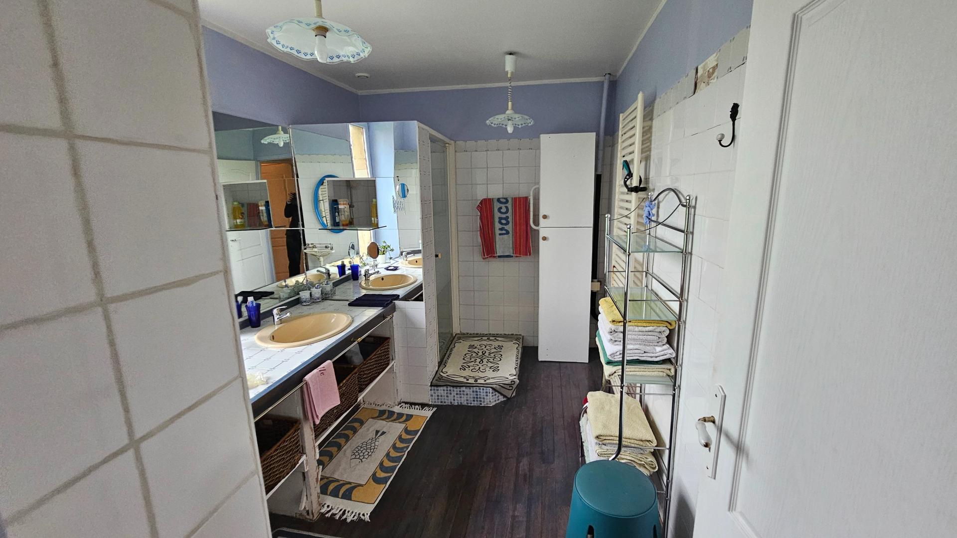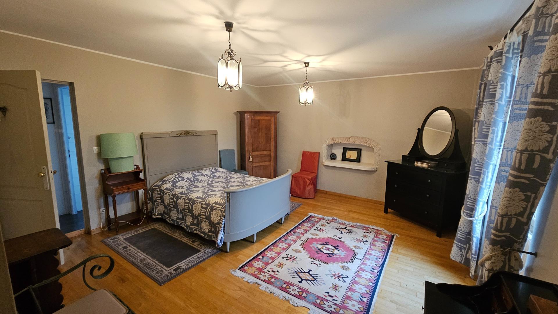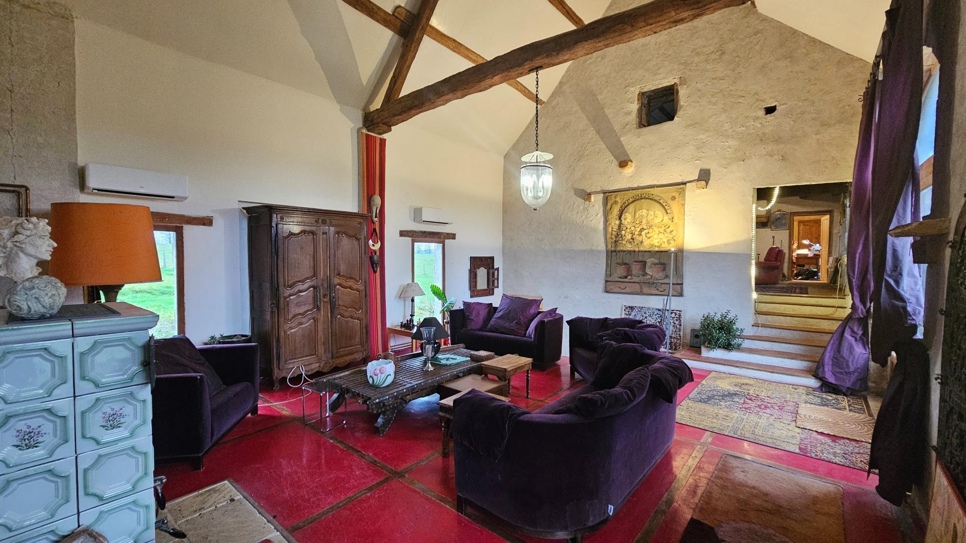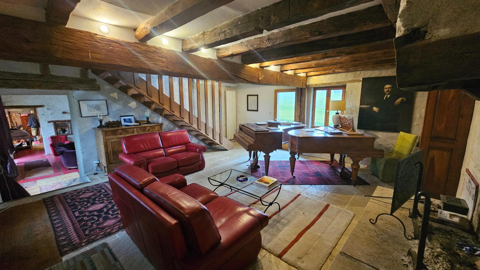 La maison se compose notamment de 6 chambres, idéales pour une grande famille ou un projet d’accueil, ainsi que de 3 salles de bains. Les espaces de vie sont lumineux et chaleureux, mettant en valeur les matériaux d’origine soigneusement conservés lors de la rénovation.