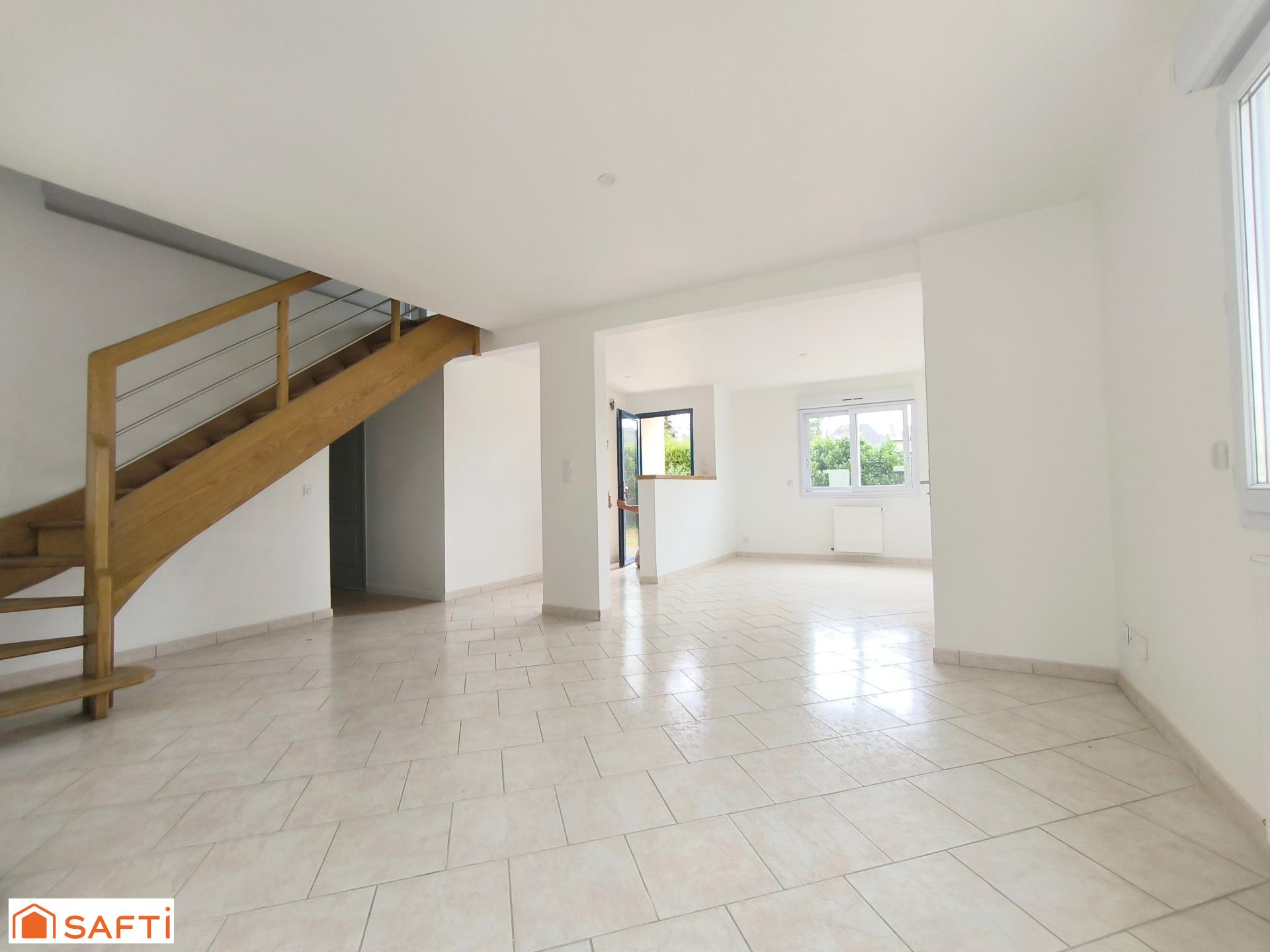 Cette maison sur un terrain de 537 m² dispose de deux places de parking, d'une architecture sous ardoise charmante et d'une cuisine donnant sur une grande terrasse. Son salon-séjour lumineux, une chambre, une salle d'eau et un WC suspendu avec lave-main au rez-de-chaussée complètent les atouts extérieurs. À l'étage, un palier dessert trois chambres et une salle de bain avec WC.