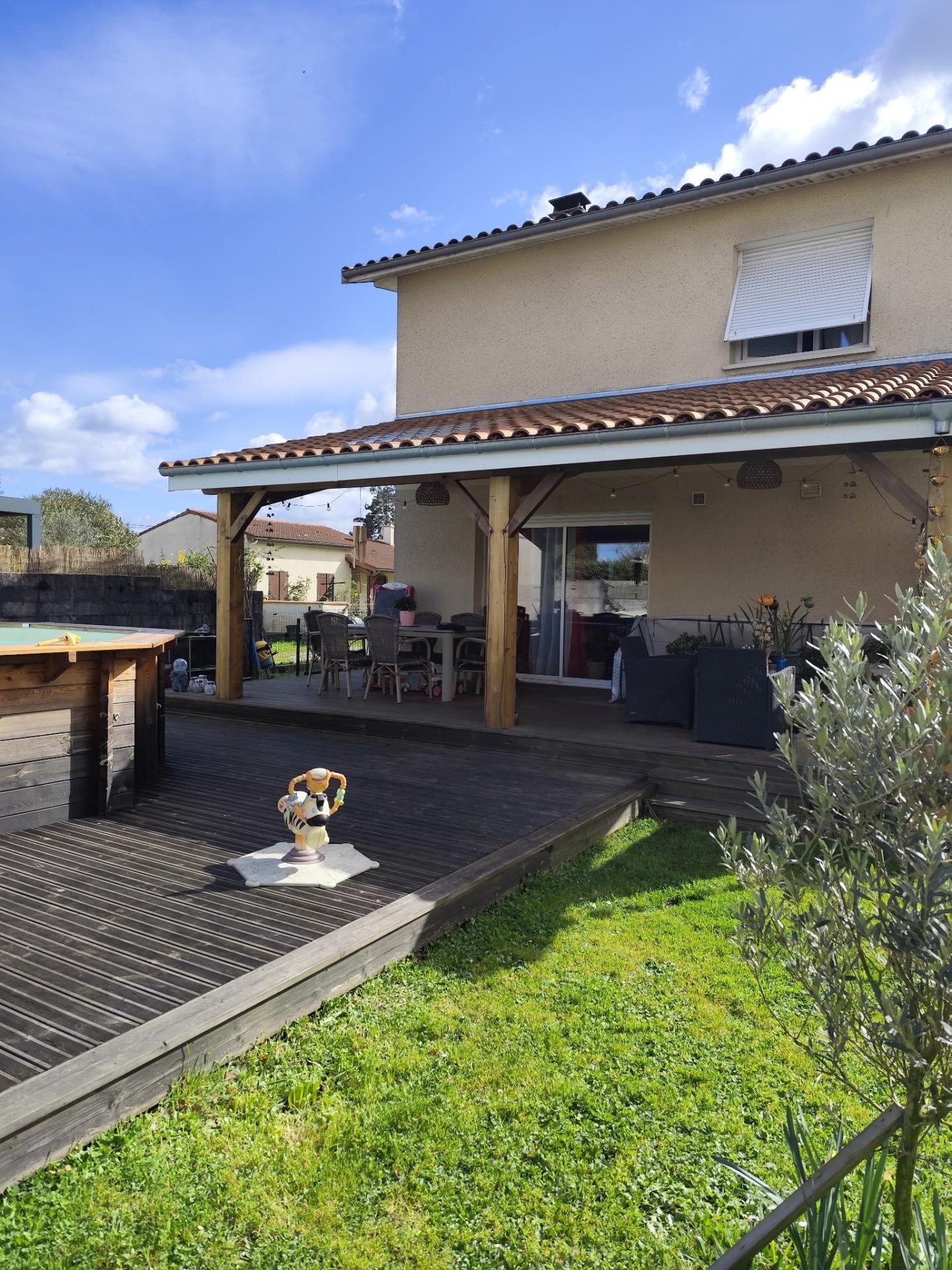 À l'extérieur, sur un terrain de 607 m², on retrouve 2 places de parking, une grande terrasse couverte donnant sur une piscine semi-enterrée, et un atelier de jardin de 15 m². L'espace extérieur arboré et clôturé assure tranquillité et intimité, idéal pour les moments de détente en famille ou entre amis.