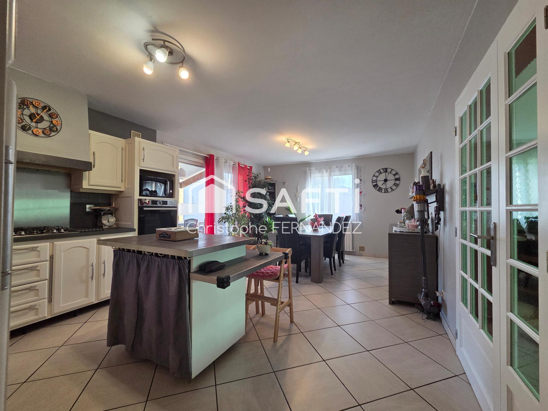 À l'intérieur de cette maison de 113 m², on découvre 3 chambres spacieuses avec placard intégré, un vaste salon séjour, une cuisine ouverte et équipée, une salle d'eau avec wc à l'étage et un wc séparé au rez-de-chaussée. Un garage de 28 m² adaptable en suite parentale offre des possibilités d'aménagement. L'entrée dessert harmonieusement les différents espaces, créant une ambiance conviviale. Cet ensemble résidentiel saura séduire par ses nombreux atouts et son confort de vie indéniable.