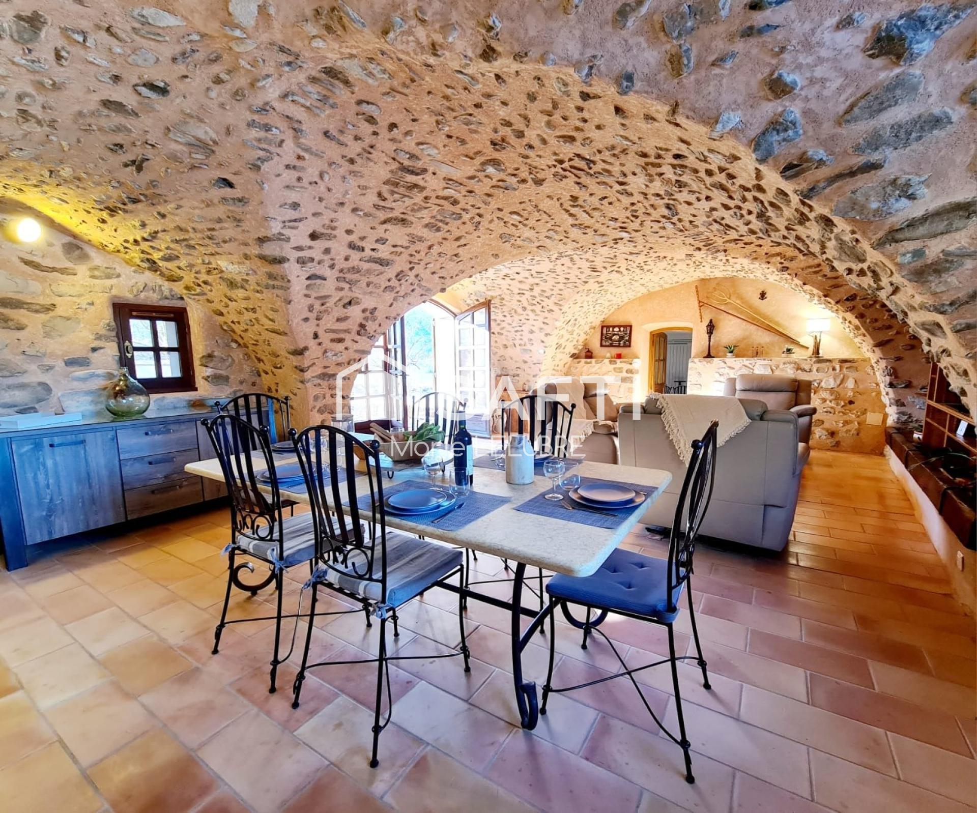 Passé le pas de la porte, cette maison de 240m² se démarque par ses 8 pièces réparties en deux logements. Les 5 chambres offrent confort et intimité, tandis que les 3 toilettes et 2 salles de bain assurent praticité et bien-être. Avec ses panneaux photovoltaïque qui offre une quasi autonomie énergétique, l'intérieur en pierre se distingue par son caractère chaleureux et authentique, offrant une atmosphère accueillante et sereine.