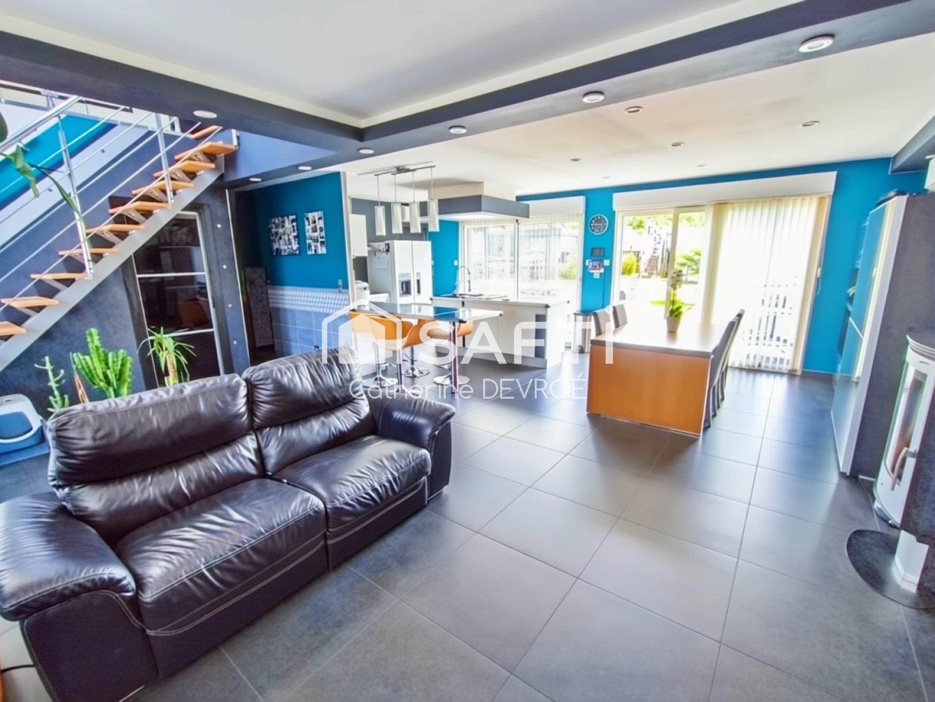 Maison de 120 m² à Bellebrune, suite parentale, grand salon de 52 m², pompe à chaleur, maison connectée, 2 terrasses, jardin, garage.