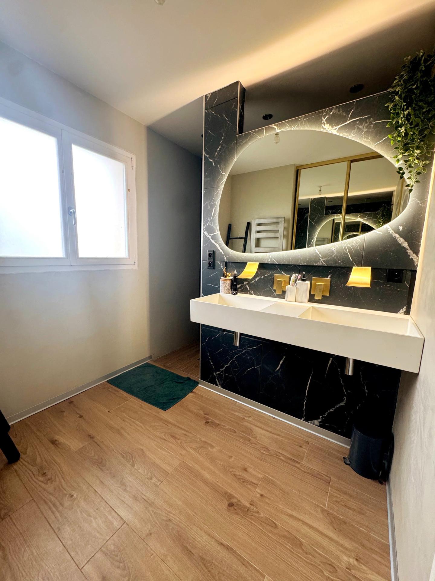 La maison a été rénové en 2022, avec une cuisine moderne aménagée et équipée ouverte sur un séjour lumineux et spacieux donnant sur la terrasse exposée au sud, 2 chambres, une salle d'eau (avec une double douche à l'italienne, deux vasques, un placard et un sèche serviette) et un wc indépendant.