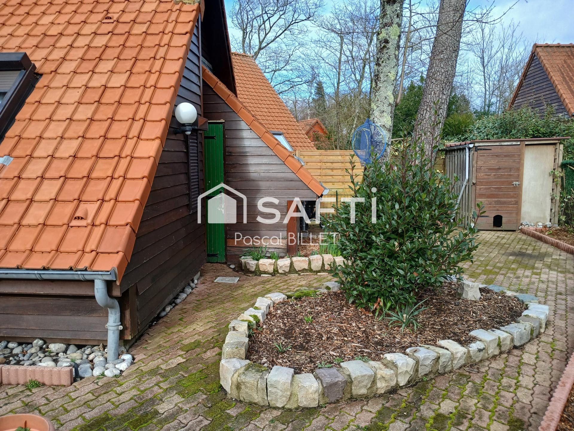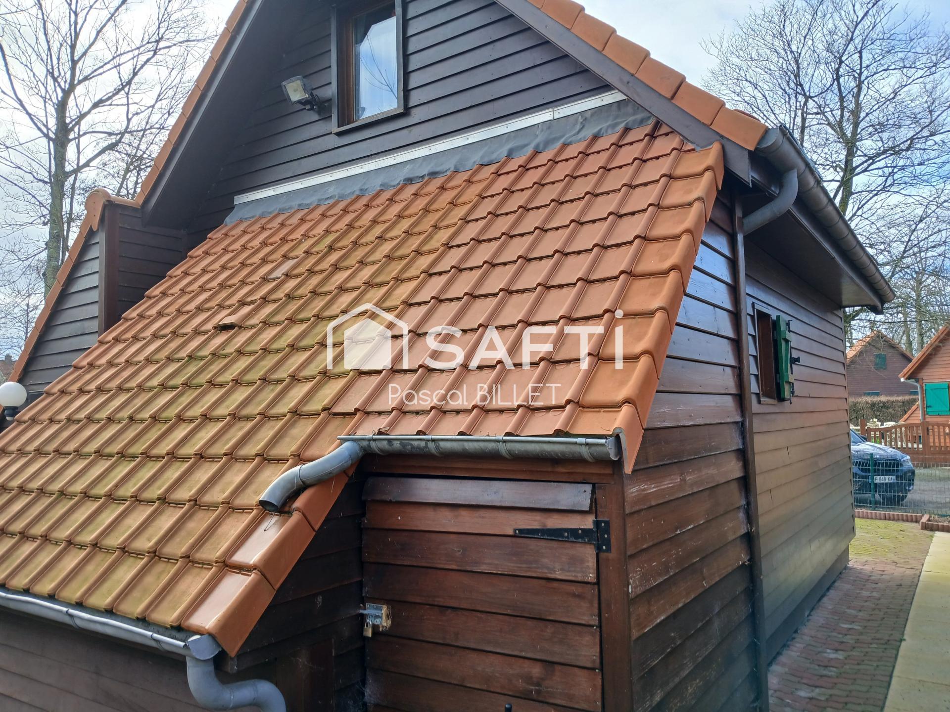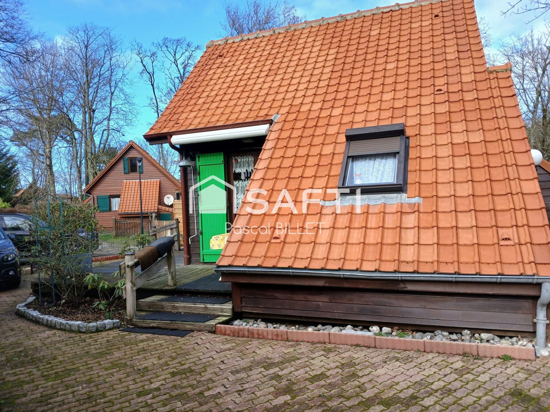 Nous vous proposons cette maison de type Chalet en bois 3 pièces de 28m²(loi CARREZ) 43m² au sol. Sur une parcelle arborée de 130m² situé dans une résidence sécurisée à 5mn de nos belles plages de Berck sur mer. Cette maison dispose d une grande pièce de vie de 17 m² ainsi que sa cuisine équipée et une salle de Bain avec douche, lavabo et WC. Et une chambre au rez-de-chaussée. A L'étage, une belle chambre avec dressing. Extérieur : parking, une belle Terrasse, Jardin arborée, Buanderie attenante à la maison et abris de jardin. Vous pouvez habiter ou louer ce bien. Il est situé dans une copropriété. Ne tardez pas à visiter ce beau petit Domaine.