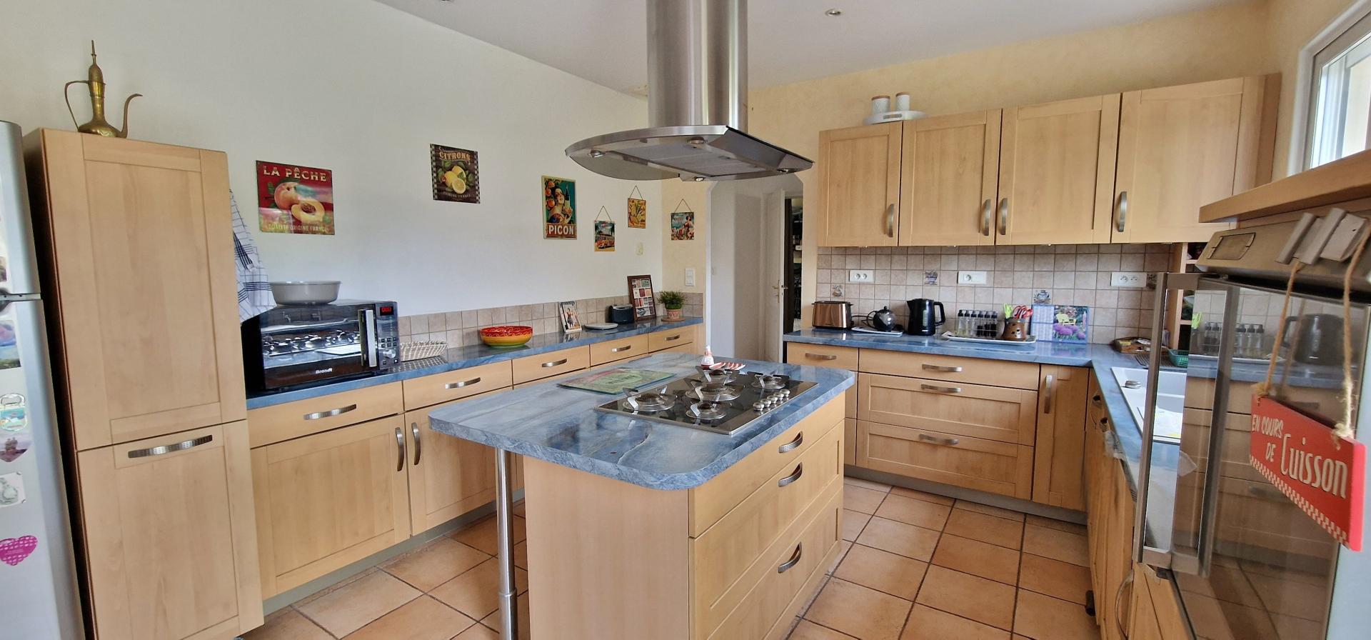 À l'intérieur, cette jolie maison construite en 2009 se compose d'une grande pièce de vie d'environ 58m2 avec cuisine ouverte aménagée et équipée, 3 grandes chambres dont une en suite d'une surface totale de 30m2 avec douche et baignoire, un bureau, un dressing, une salle de bains supplémentaire avec WC, une arrière-cuisine, un cellier, un WC séparé et un grand garage carrelé attenant.