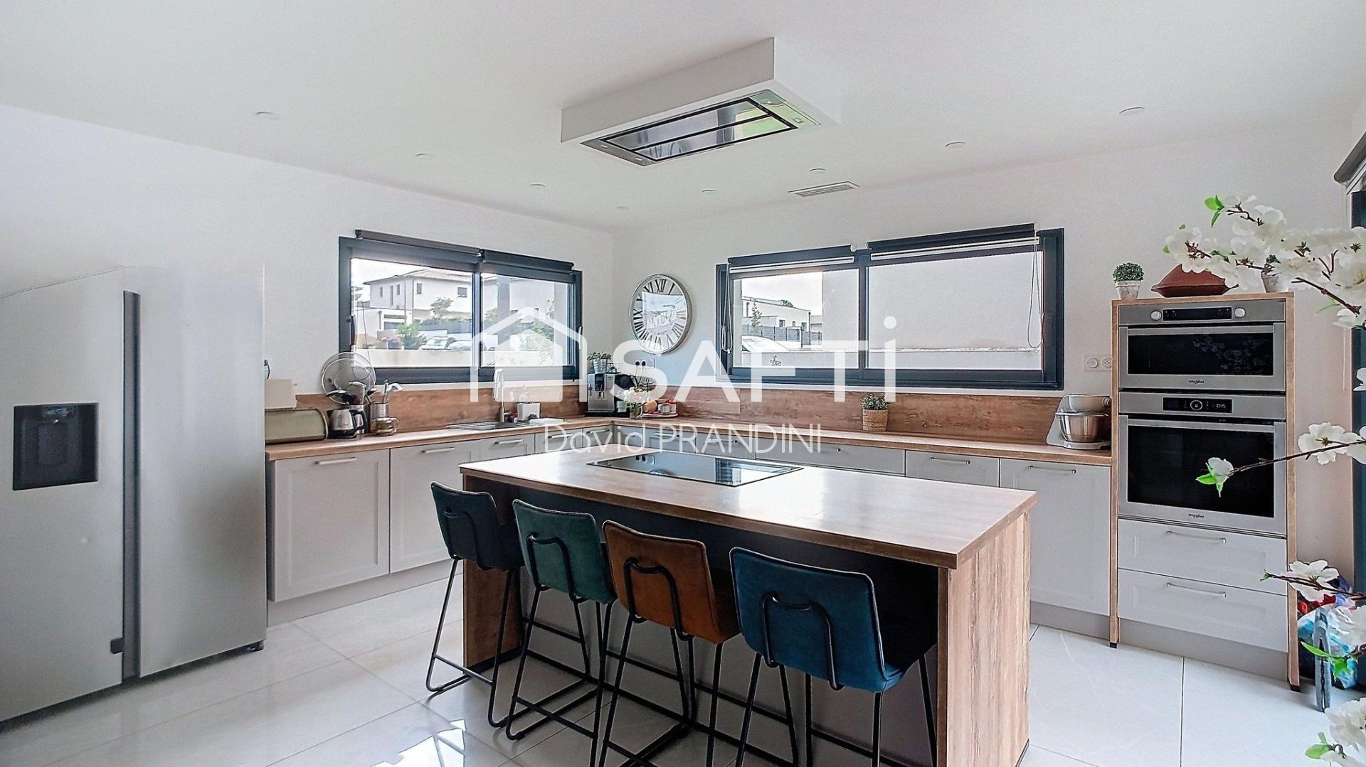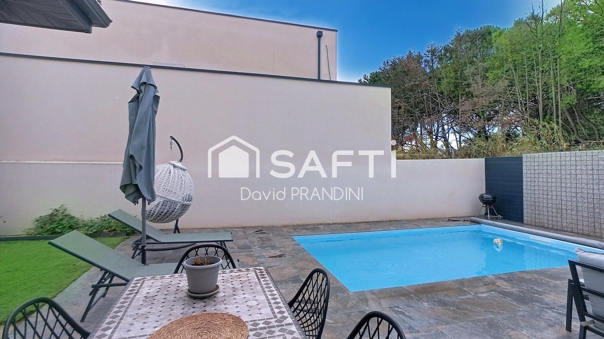Maison contemporaine 4 chambres, piscine, terrasse.