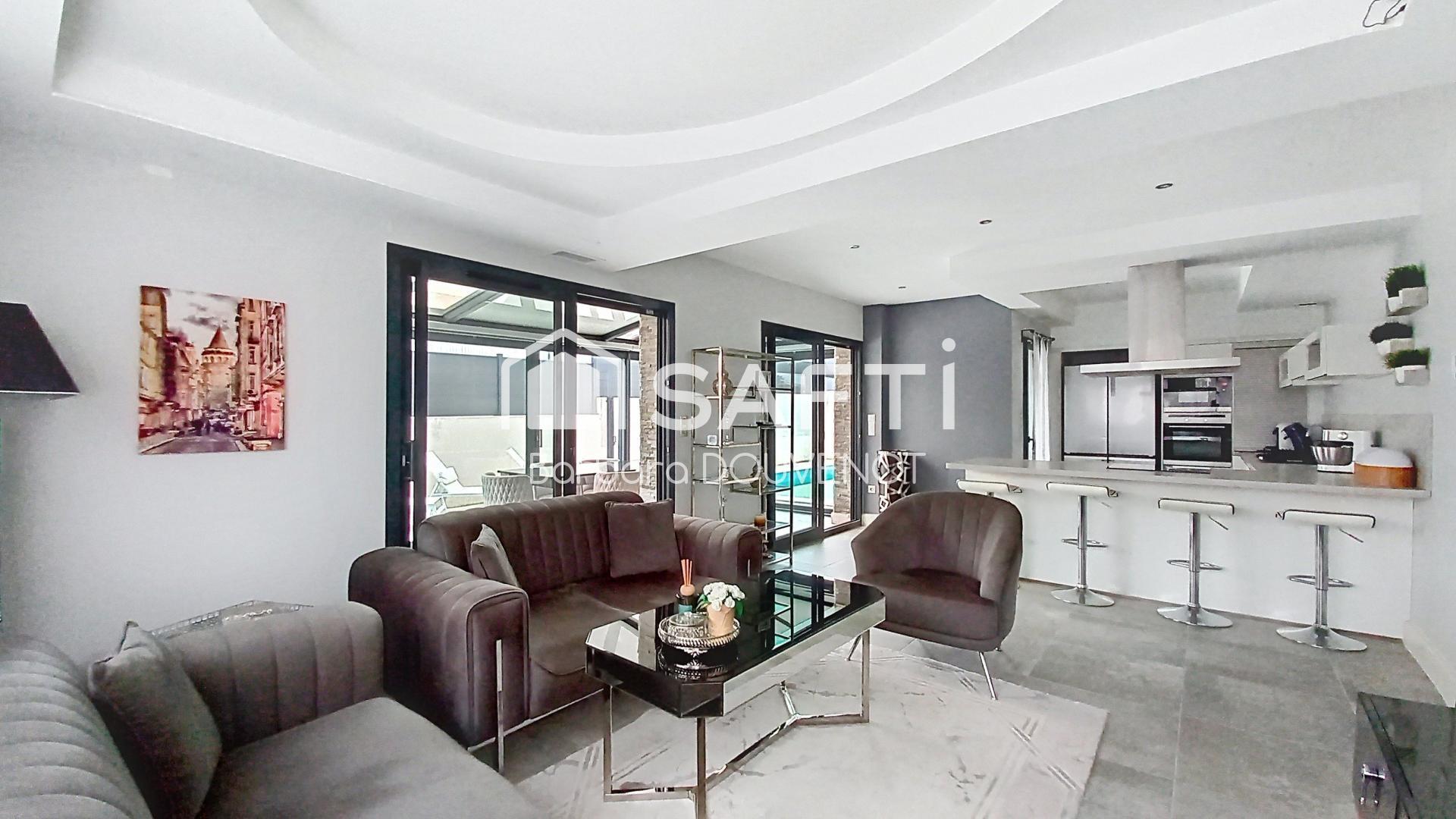 Villa contemporaine de 142 m² + véranda de 13 m² - 2 suites, 3 chambres, piscine, jardin vert, garage, stationnement.