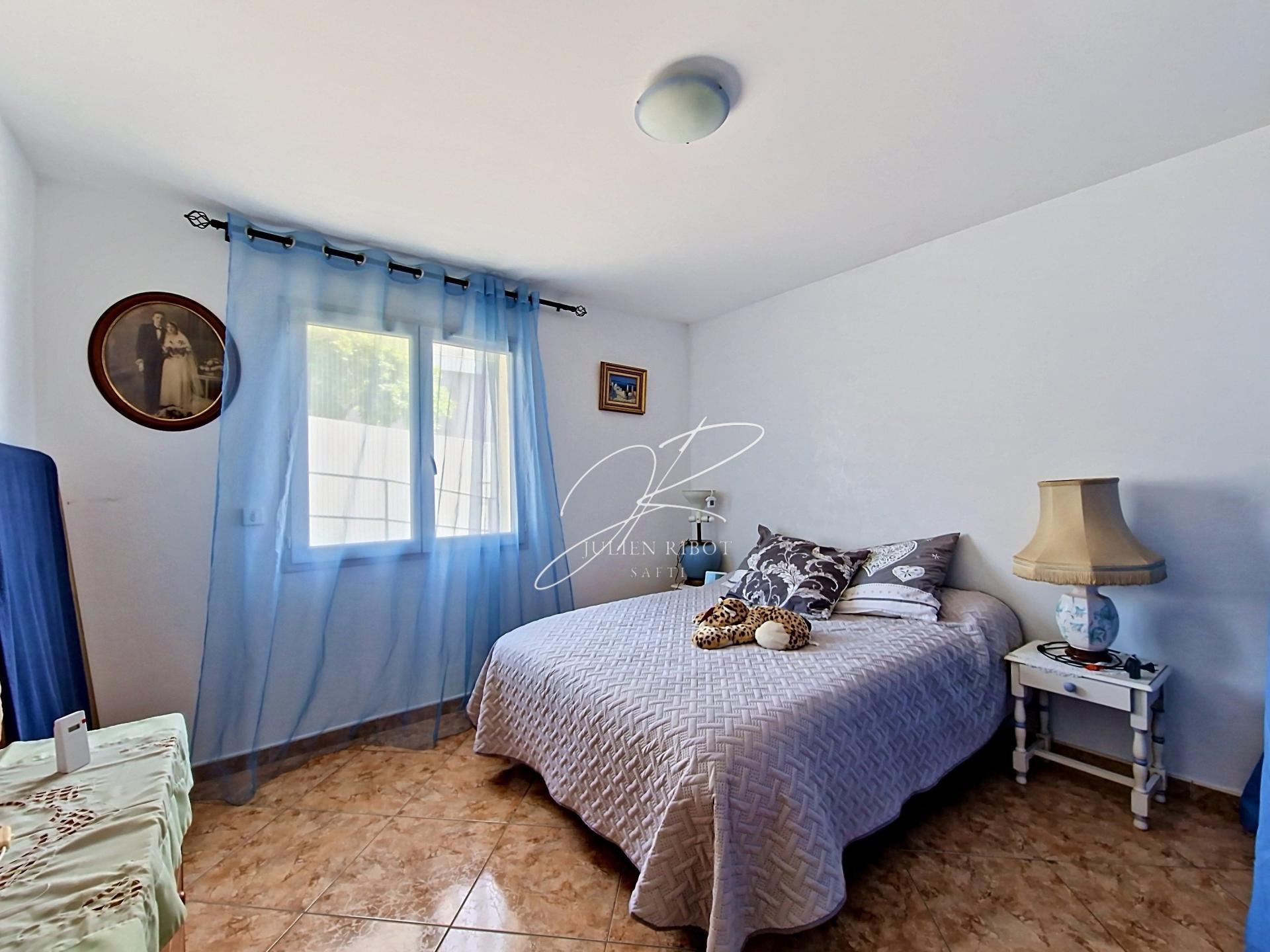 De plain-pied, elle s’ouvre sur un hall d’entrée qui dessert un agréable séjour lumineux bénéficiant d’une belle vue dégagée. La cuisine, indépendante, entièrement équipée et de type dinatoire, propose un espace convivial parfaitement adapté à la vie de famille. L’espace nuit se compose de quatre chambres, d’une salle de bains équipée à la fois d’une douche et d’une baignoire, ainsi que d’un WC séparé.