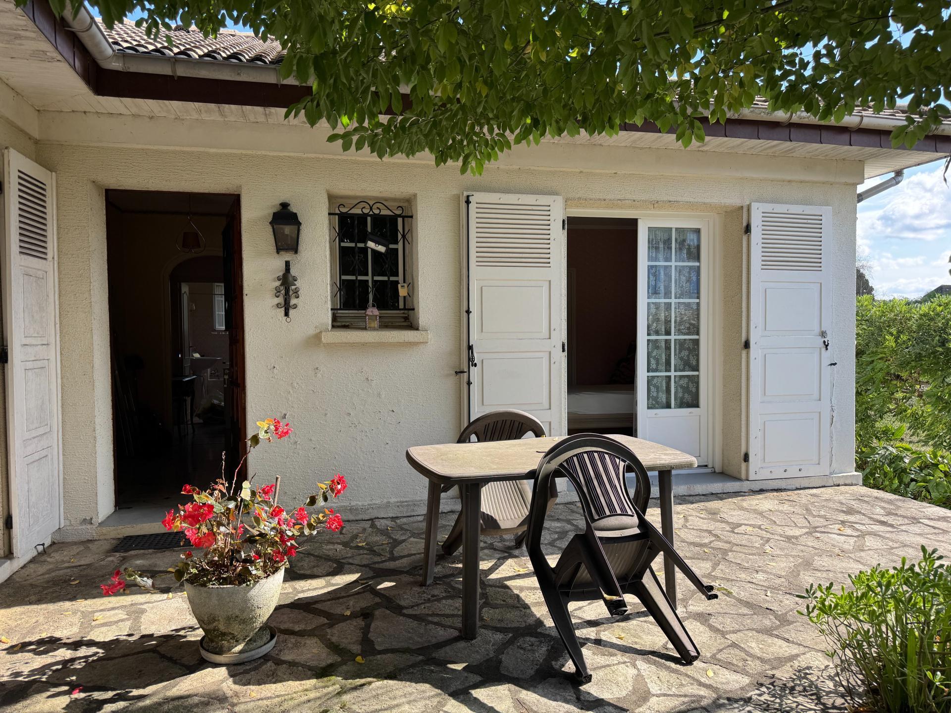 Terrasse d'env. 20m². Garage d'env. 30m² mitoyen avec les voisins. Chaudière au gaz de ville datant de 2000 (entretien annuel toujours réalisé par l'entreprise Hourtané). Radiateurs en fonte.