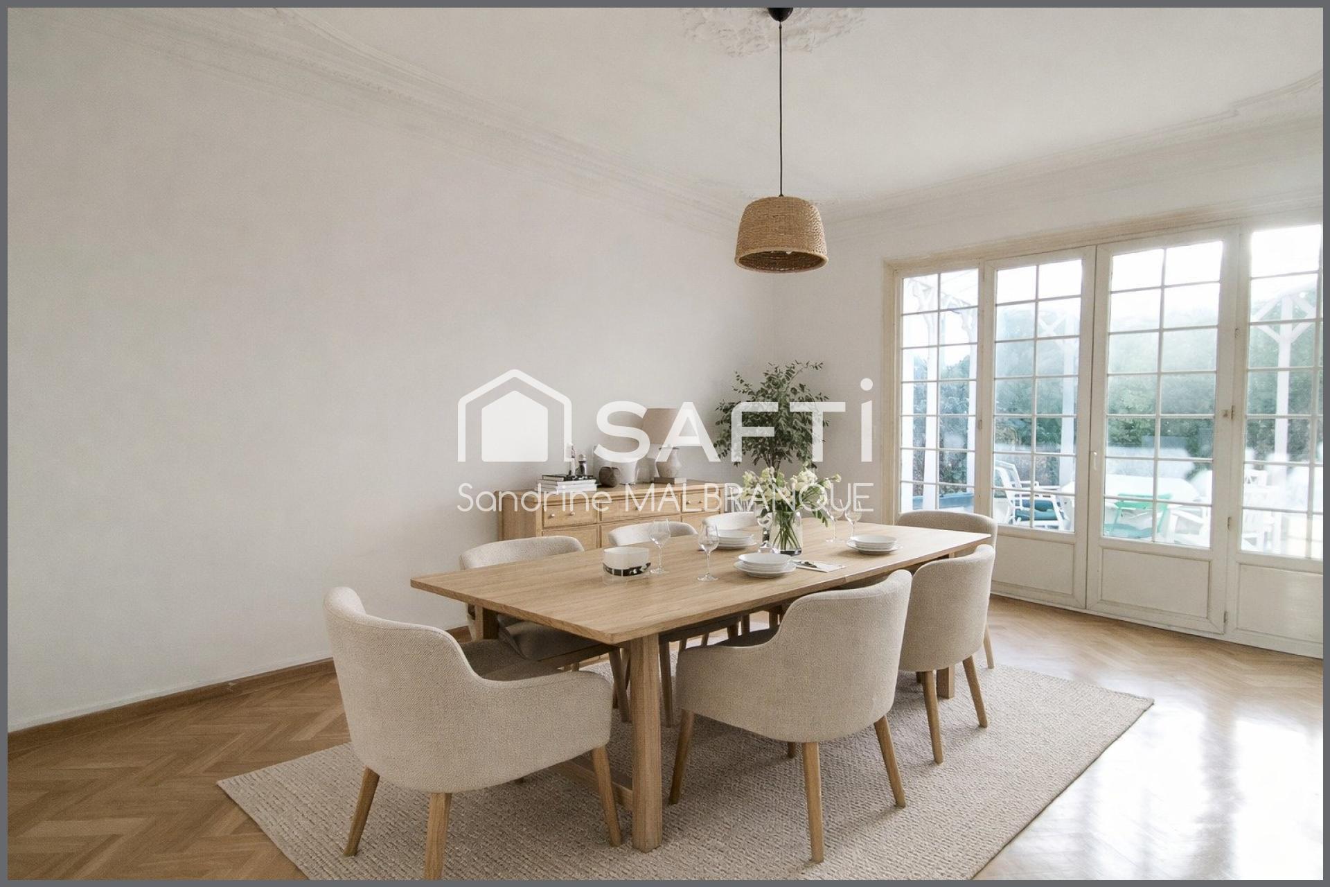 Je vous propose de venir découvrir cette belle maison bourgeoise semi individuelle des années 30 d'environ 240 m2 pleine de charme.