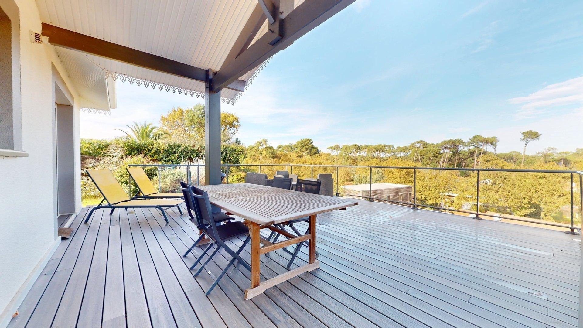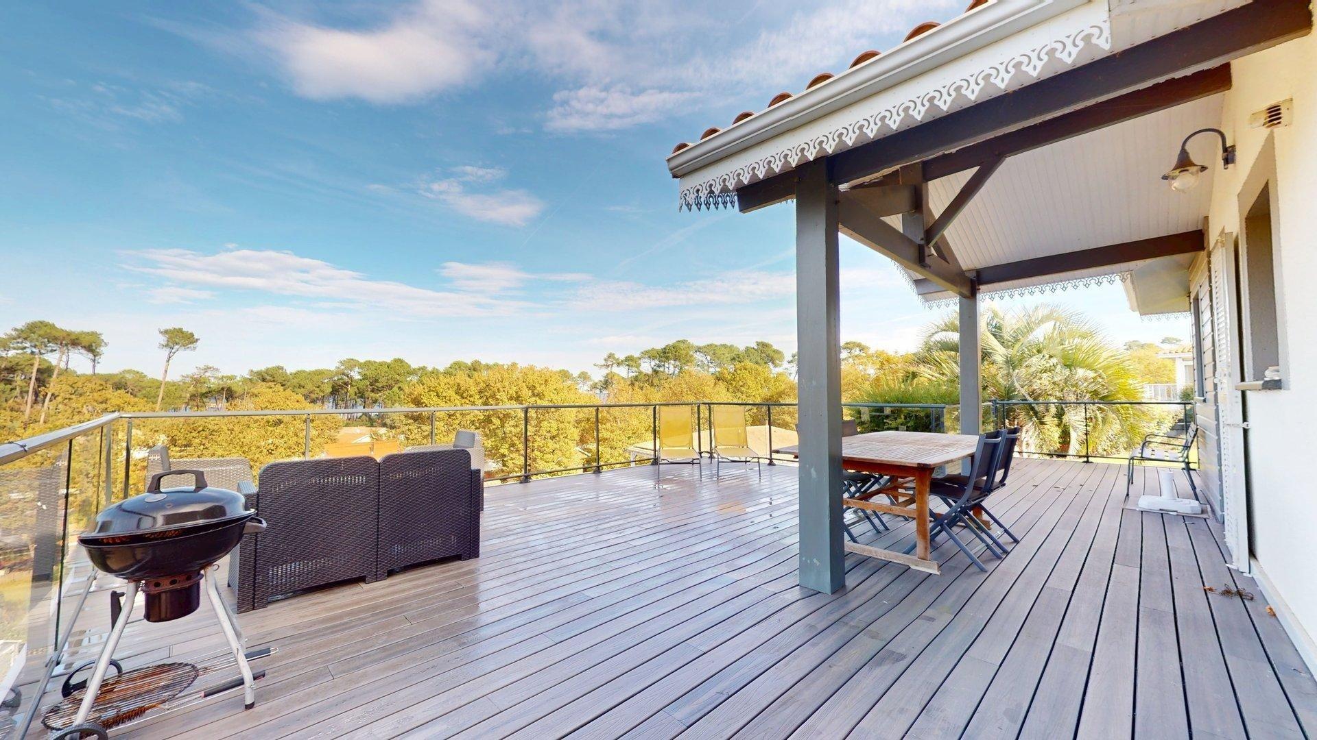 Un cadre rare à Biscarrosse-Lac, dominant la canopée avec vue exceptionnelle sur le lac.