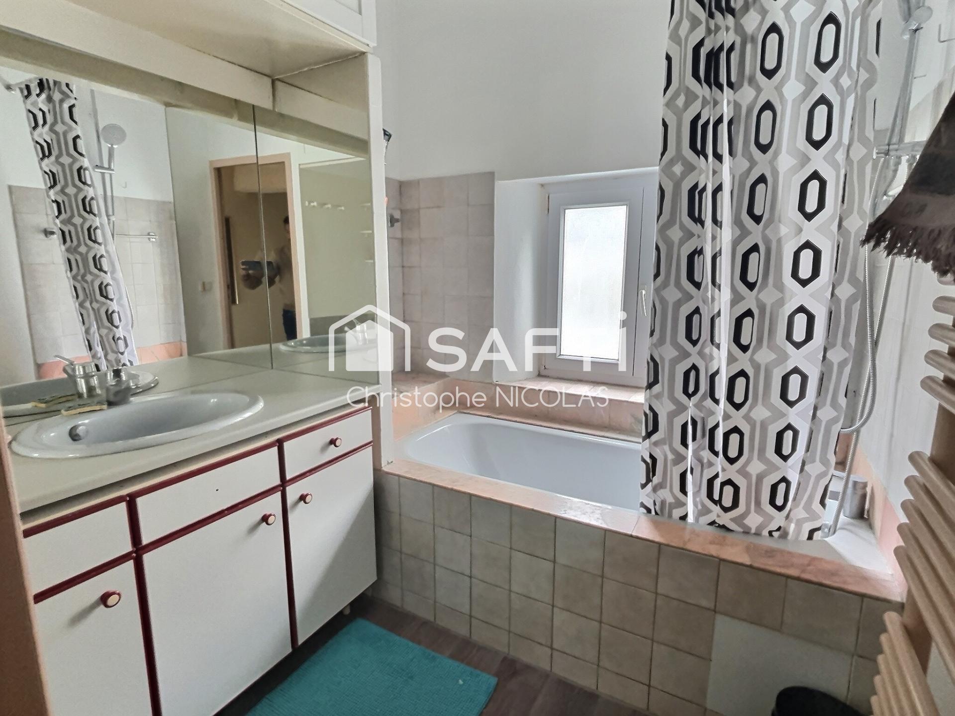 Cette maison de 111 m² se répartit sur 2 niveaux. Au rez-de-chaussée, vous trouverez un salon lumineux avec sa grande verrière (refaite en 2024), une cuisine ouverte, une chambre avec son espace douche /lavabo. L'étage comprend 1 chambre sous comble, une grande chambre parentale, et une salle de bain.