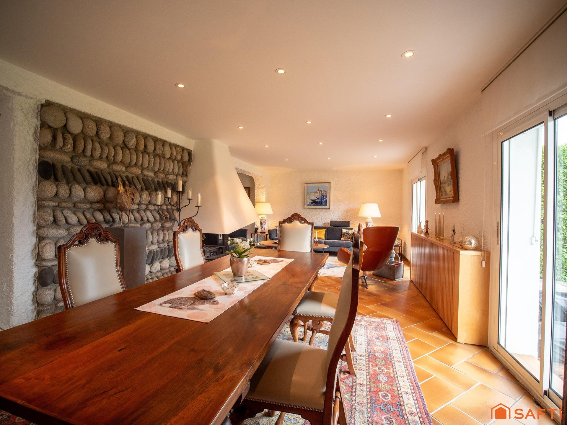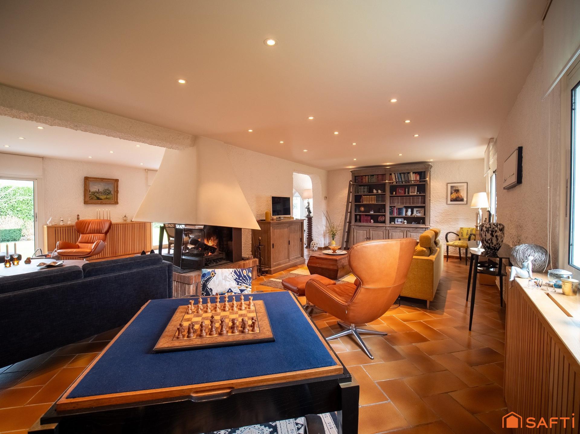 À l’intérieur, cette demeure à étage de 260 m² dévoile des volumes généreux et une atmosphère chaleureuse, pensée dans les moindres détails. La cuisine entièrement équipée et aménagée s’ouvre sur des espaces de vie lumineux. Le séjour, véritable pièce maîtresse, s’organise autour d’une cheminée élégante, et se distingue par ses murs en galets de Garonne qui conférent à l'espace une identité unique, authentique et intemporelle.