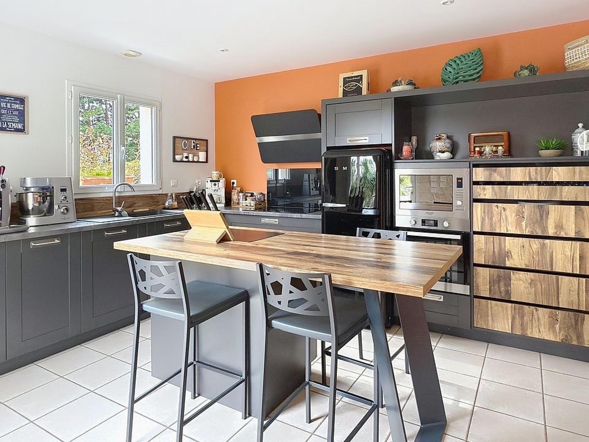À l'intérieur, cette maison spacieuse d'environ 180m² se compose de 8 pièces dont 6 chambres, idéale pour une grande famille. Le rez-de-chaussée comprend une entrée spacieuse, une cuisine aménagée et équipée, un séjour lumineux avec cheminée, un cellier, 4 chambres et une salle d'eau balnéo avec hammam et wc séparé. À l'étage, on trouve un dégagement, 2 chambres supplémentaires et une salle d'eau également avec WC séparé.