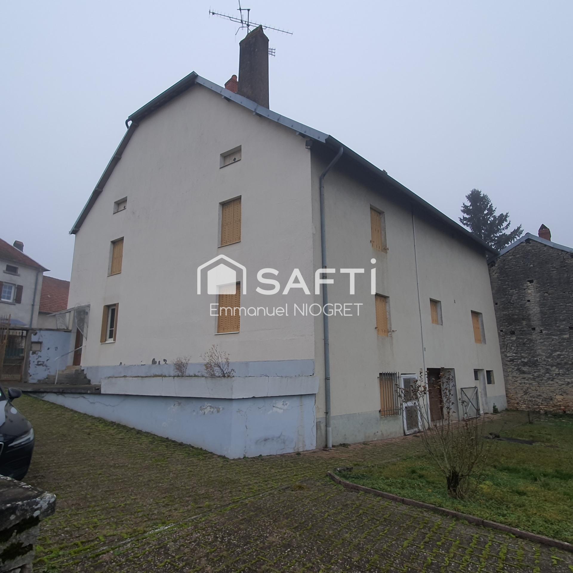Je vous propose une maison datant des années 1850, d'environ 155 m² sur un terrain d’environ 6000 m² dans un village de la Haute-Saône. Proche de toutes les commodités, ce bien offre de superbes volumes et un agencement fonctionnel. Au rez-de-chaussée, vous trouverez une cuisine avec cheminée, une grande pièce à vivre lumineuse, ainsi que deux chambres, une salle de bain et un WC indépendant. À l’étage, deux chambres et des combles accessibles et aménageables. Le sous-sol, couvrant toute la surface de la maison, comprend un WC, une porte de garage électrique et une cave. De plus on trouve, une annexe d’environ 50 m² sur deux niveaux avec cave voûtée, idéale pour en créer un gite. Une dépendance de 17 m² avec grenier.